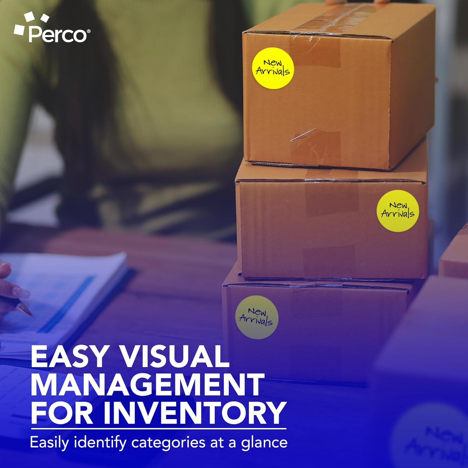 Perco Fluorescent Yellow 3-Inch Round Sticker Labels with Easy Peel Perforation - 500 Labels per Roll - Strong Adhesion, Vibrant Colors for Organizing, Crafting & More - Made in USA