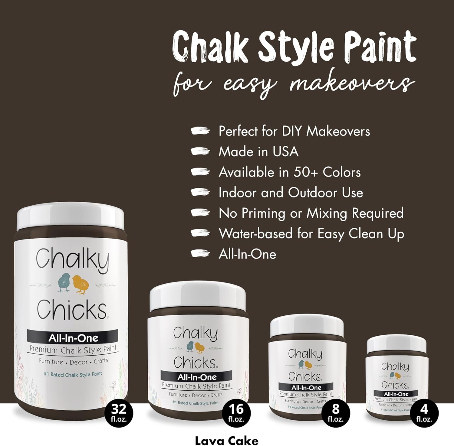 Chalky Chicks All-in-One Chalk Paint for Furniture or Cabinet - 4 Fl Oz - Matte Finish Lava Cake (Dark Brown) for Metal, Wood Furniture Paint - No Sanding All-in-One for Home Decor & Crafts, USA Made
