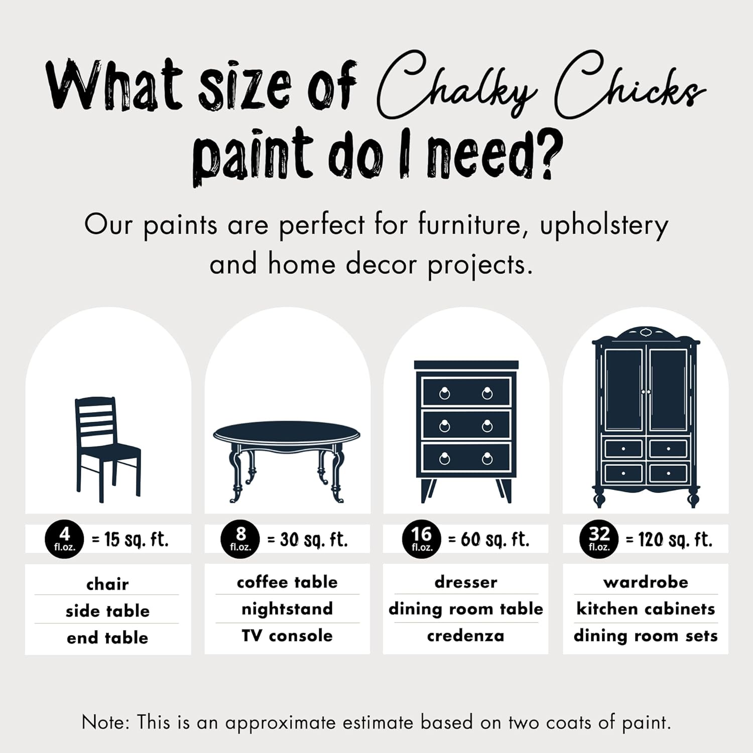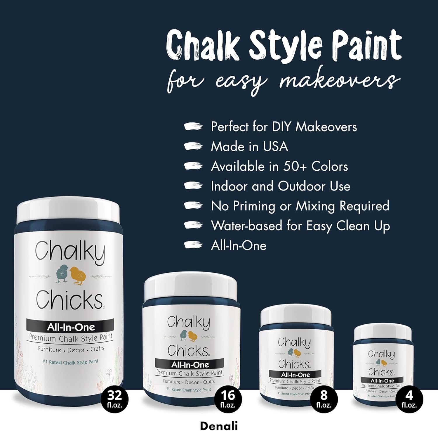- TRANSFORM FURNITURE AND HOME DECOR WITH EASE: Chalky Chicks will save you time, money, and hassle. No sanding, priming, or multiple coats needed—just start painting your furniture with our cabinet paint no sanding or priming. Our paint is suitable for wood, metal, concrete, textiles, laminate, and more. Whether you prefer navy blue chalk paint, light blue paint, or green chalk paint, our chalk paint for furniture transforms any space with ease, making it ideal for DIY projects & craft painting.
