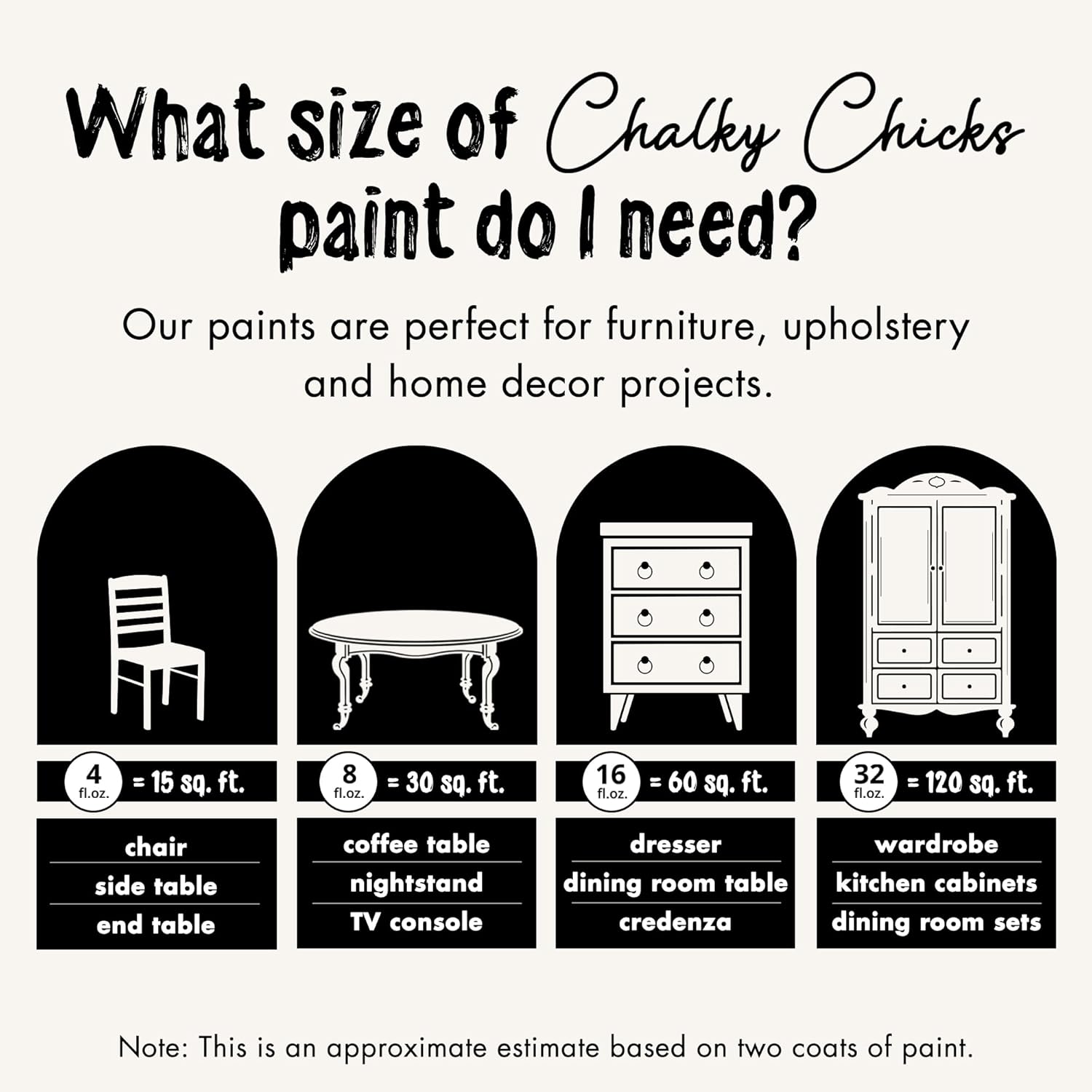 - TRANSFORM FURNITURE AND HOME DECOR WITH EASE: Chalky Chicks will save you time, money, and hassle. No sanding, priming, or multiple coats needed—just start painting your furniture with our cabinet paint no sanding or priming. Our paint is suitable for wood, metal, concrete, textiles, laminate, and more. Whether you prefer navy blue chalk paint, light blue paint, or green chalk paint, our chalk paint for furniture transforms any space with ease, making it ideal for DIY projects & craft painting.