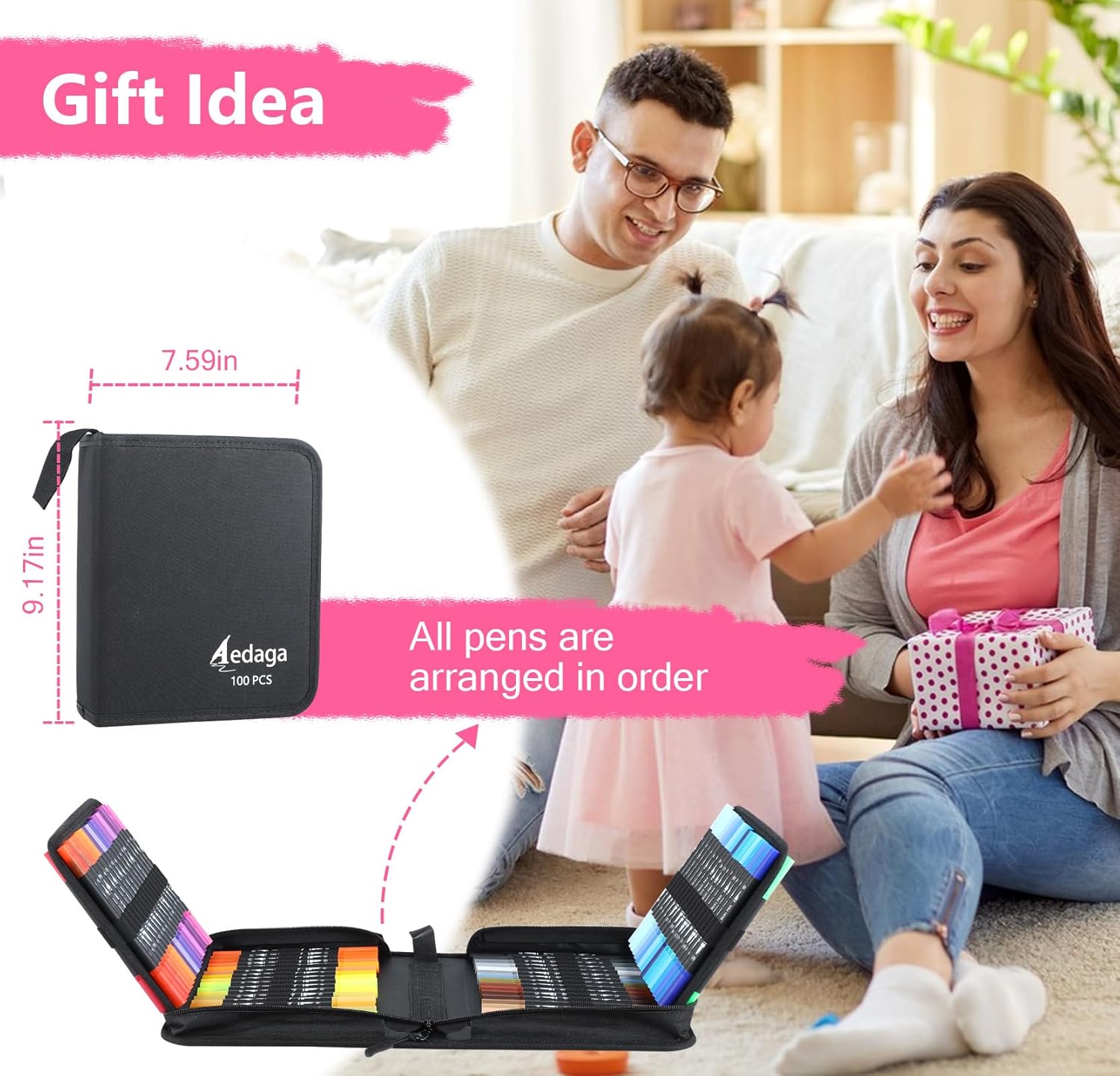 - Vibrant Colors : 100 color coded duo tip brush coloring pens. The high-quality water-based ink seamlessly blends, creating beautiful coloring effects without worrying about smudges or uneven coloring. The rich and vivid colors inspire artistic creativity and allow for easy layering and mixing. Suitable for various art activities, including designing animals, flowers, patterns, drawing, sketching, and calligraphy