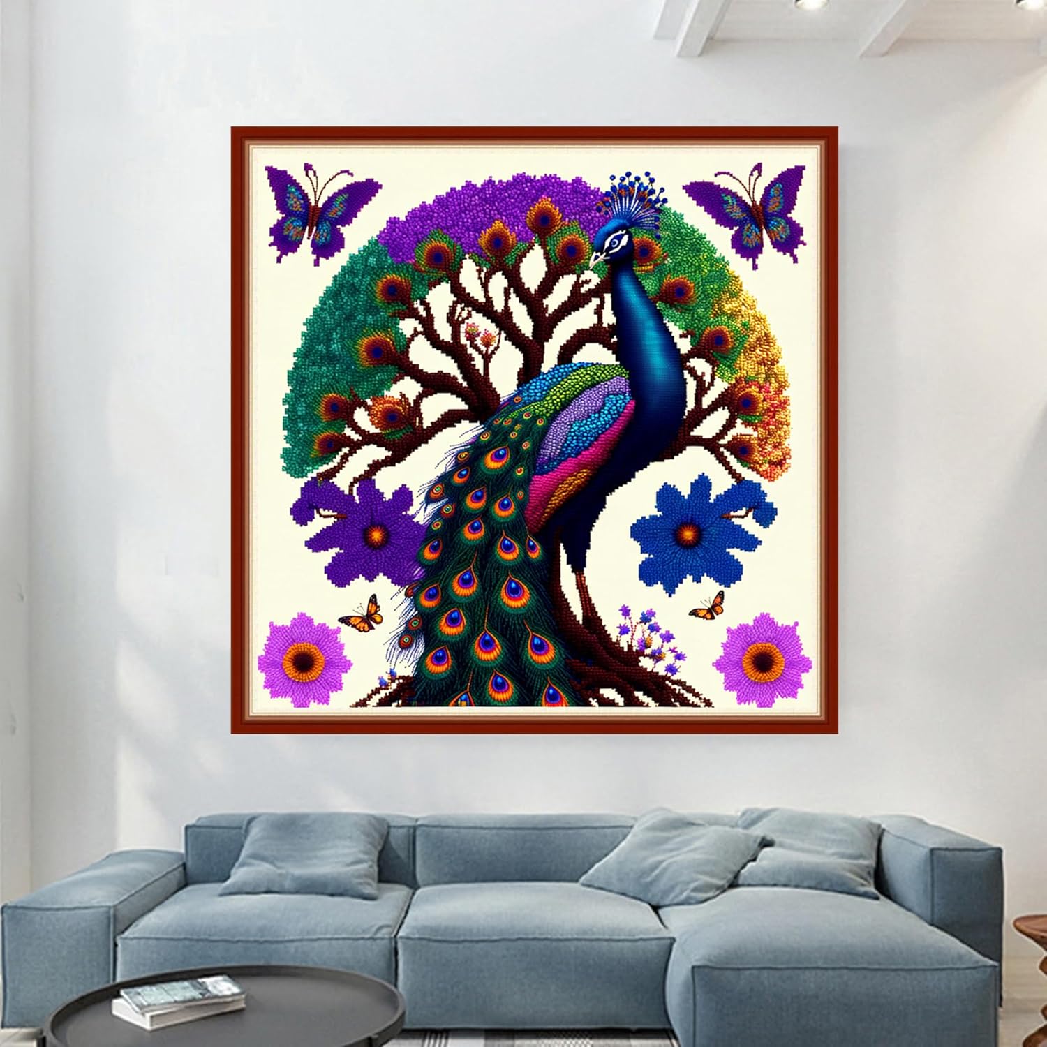 Dimensean Stamped Cross Stitch Kits Full Range of Embroidery Patterns Starter Kits for Beginners Adult or Kids DIY Cross Stitches Needlepoint Kits 11CT-Peacock Butterfly 17.7x17.7 inch