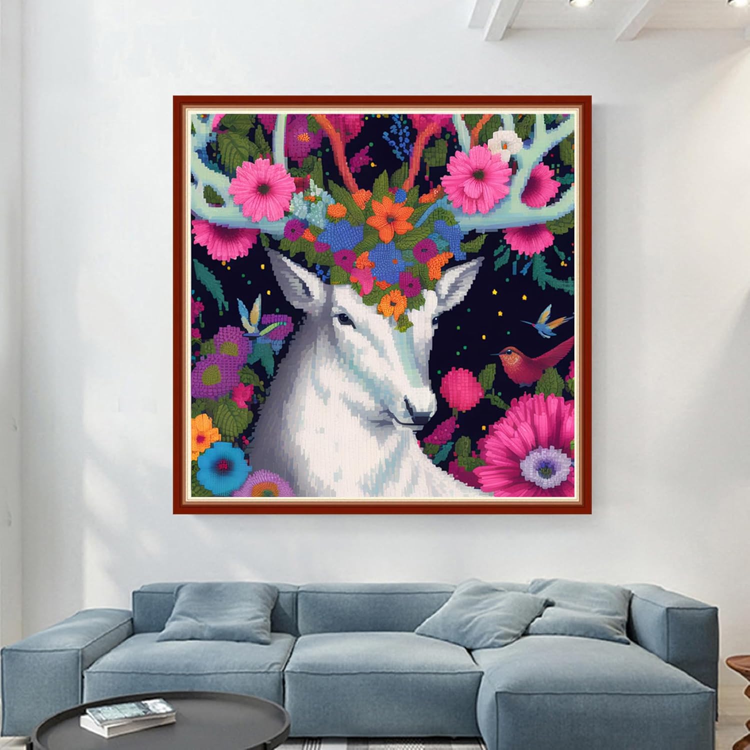 Dimensean Stamped Cross Stitch Kits Full Range of Embroidery Patterns Starter Kits for Beginners Adult or Kids DIY Cross Stitches Needlepoint Kits 11CT-Elk Flower 17.7x17.7 inch