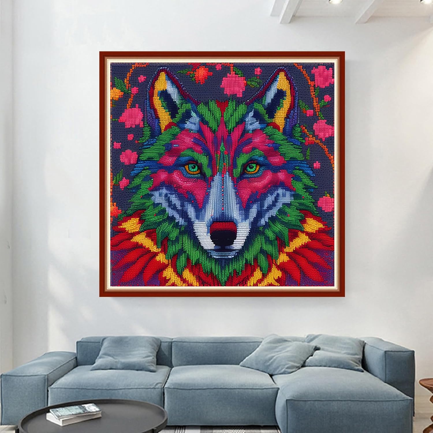 Dimensean Stamped Cross Stitch Kits Full Range of Embroidery Patterns Starter Kits for Beginners Adult or Kids DIY Cross Stitches Needlepoint Kits 11CT-Magic Wolf 17.7x17.7 inch