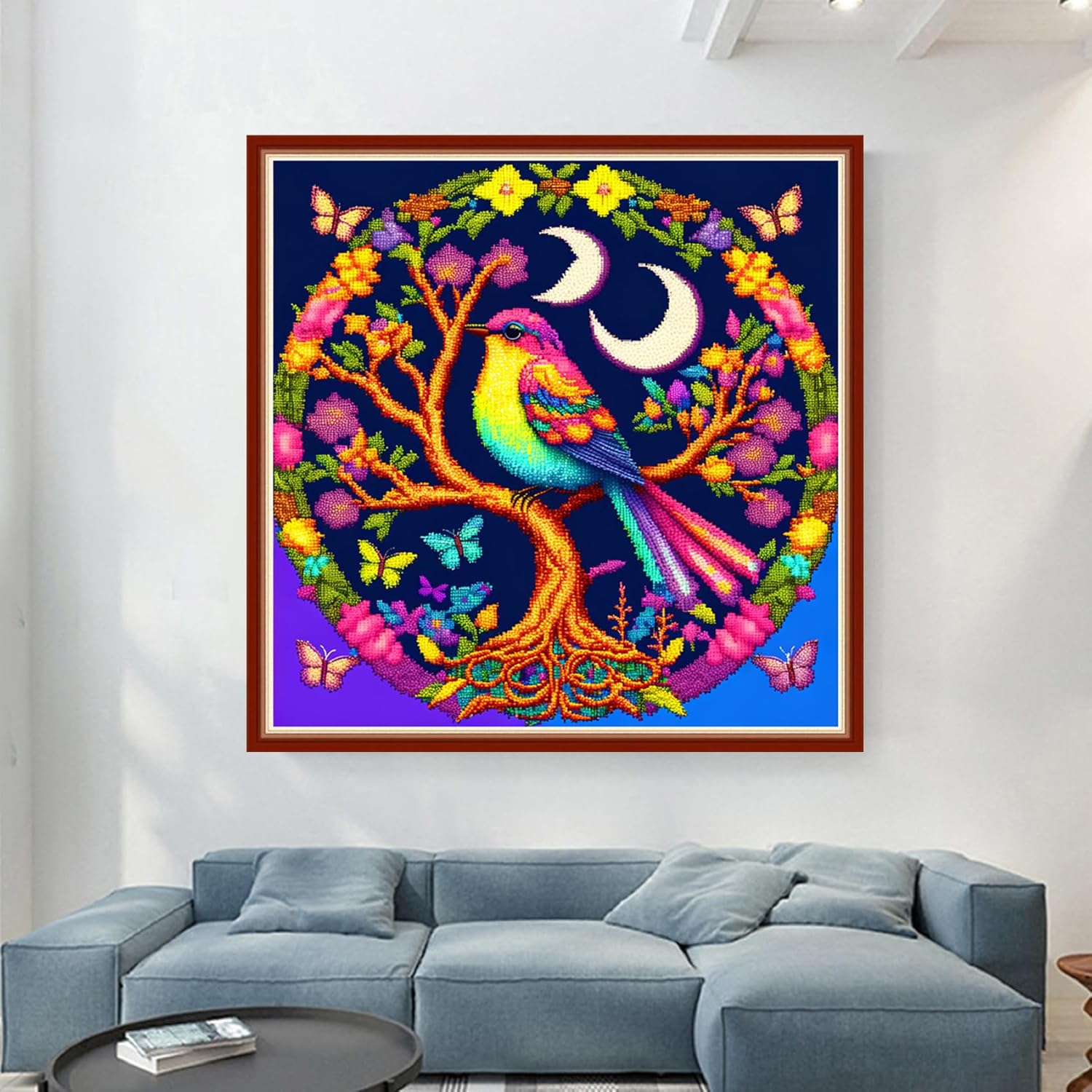 Dimensean Stamped Cross Stitch Kits Full Range of Embroidery Patterns Starter Kits for Beginners Adult or Kids DIY Cross Stitches Needlepoint Kits 11CT-Bird Flower 17.7x17.7 inch