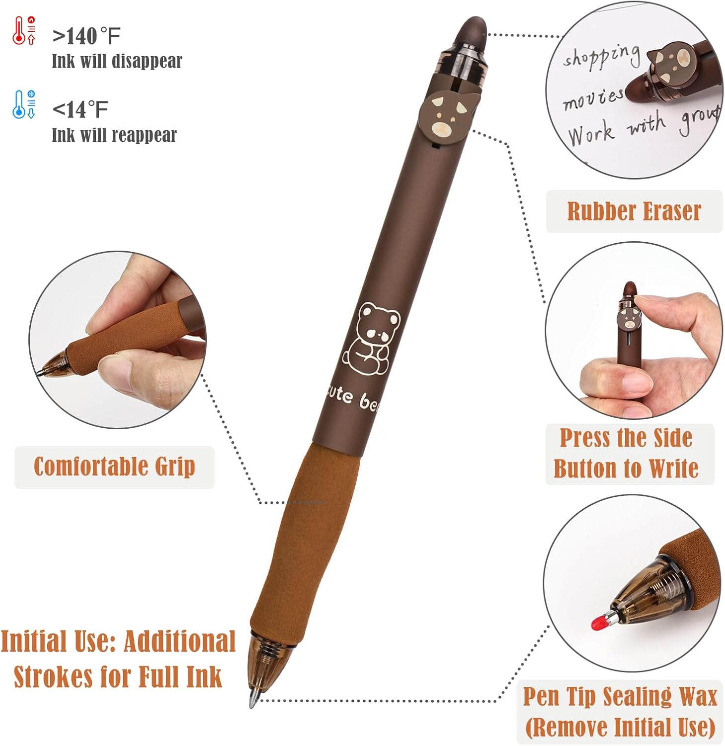 BAYTORY 8Pcs Cute Retractable Erasable Gel Pens, Blue and Black Ink Pen with Eraser Clear, Smooth Writing Comfortable to Use for Note Taking Marking Planner Crossword Puzzles (Coffee)