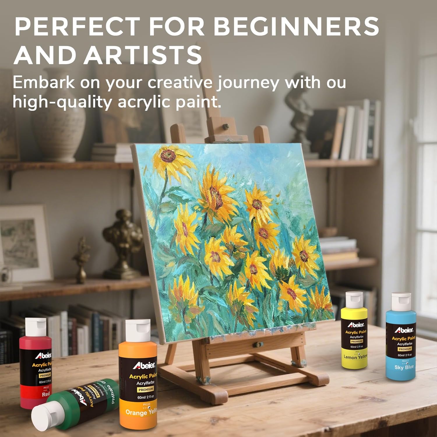 ABEIER Acrylic Paint Set, 56 Colors (2oz/60ml), Matte Finish, Waterproof, Rich Pigments, Non-Toxic Paints for Painting on Canvas Crafts Wood Ceramic, Fabric Ideal for Beginners and Students