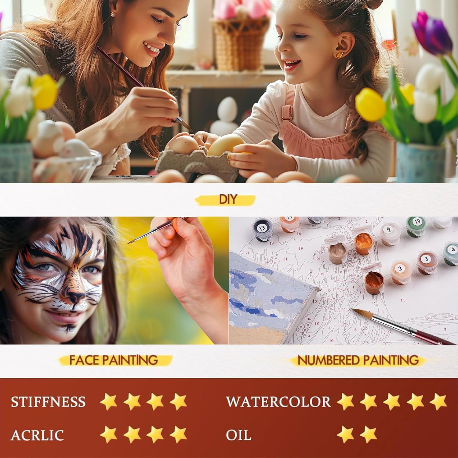 - Not only for painting such as watercolor, acrylic, Gouache and so on, this watercolour round paint brush is specially designed for DIY craft such as scale, model, rock and egg painting. One budget for various application.