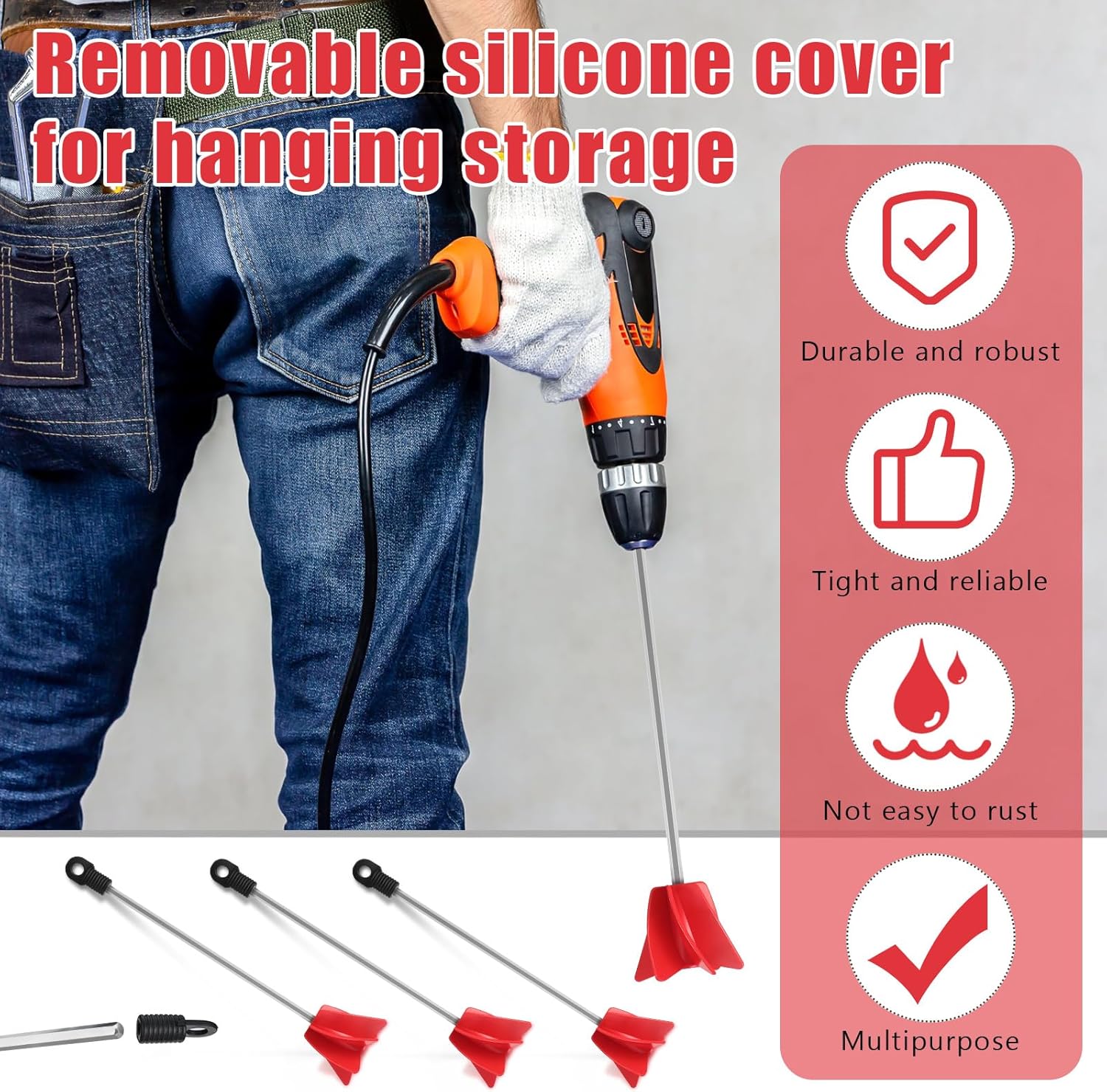 - Sturdy to Use: the front end of gallon paint mixer is thickened, which is not easy to break and bend; And the long rod is made of metal, featuring high hardness, not easy to rust or wear; It comes with a removable silicone hanging ring, which can be hung when not in use, convenient to store