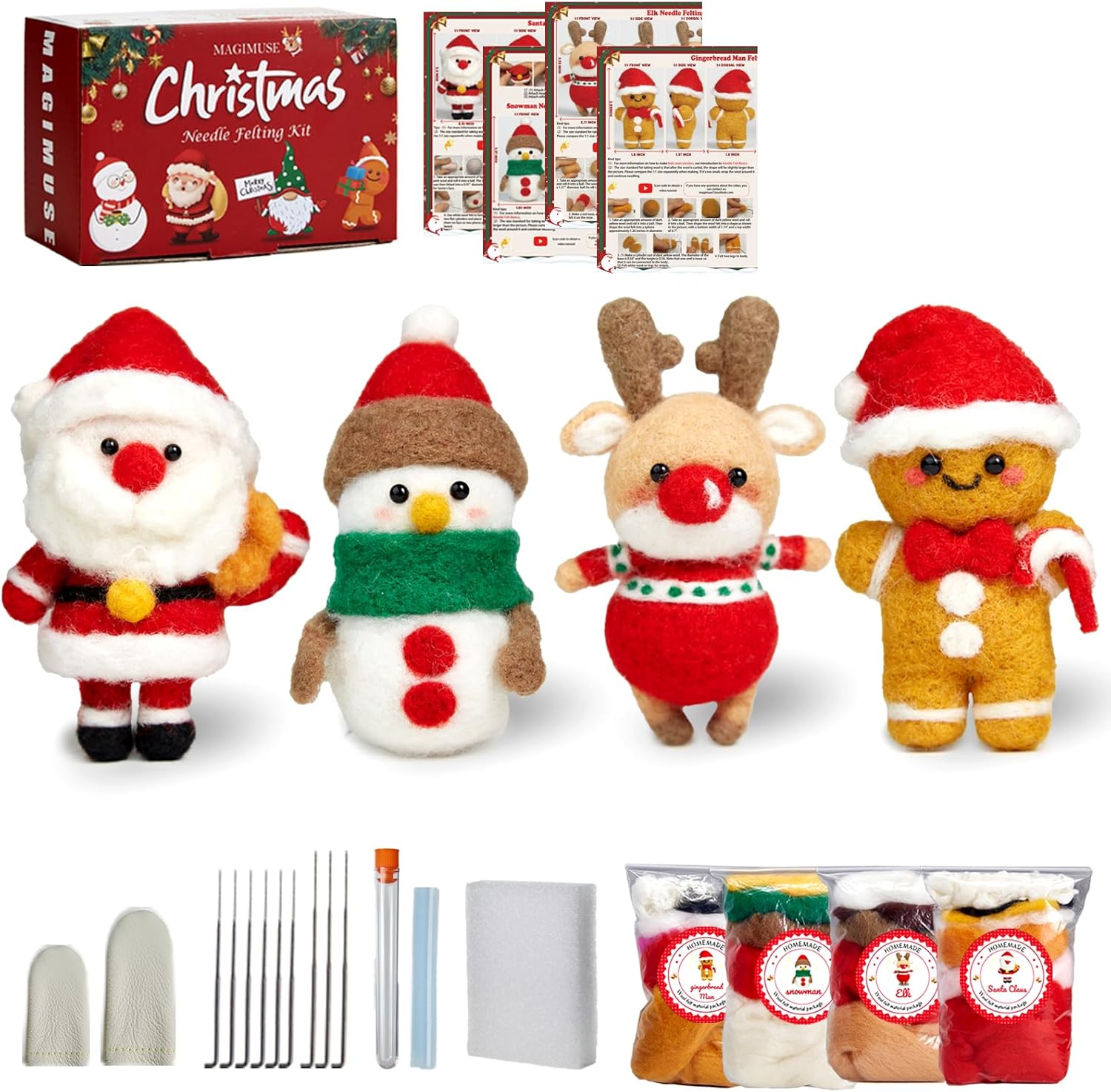 MAGIMUSE Needle Felting Kit, Needle Felting Starter Kit with Basic Felt Tools, Christmas Needle Felting Kit for Beginners, DIY Wool Needle Felting Supplies for Christmas Festival Crafts