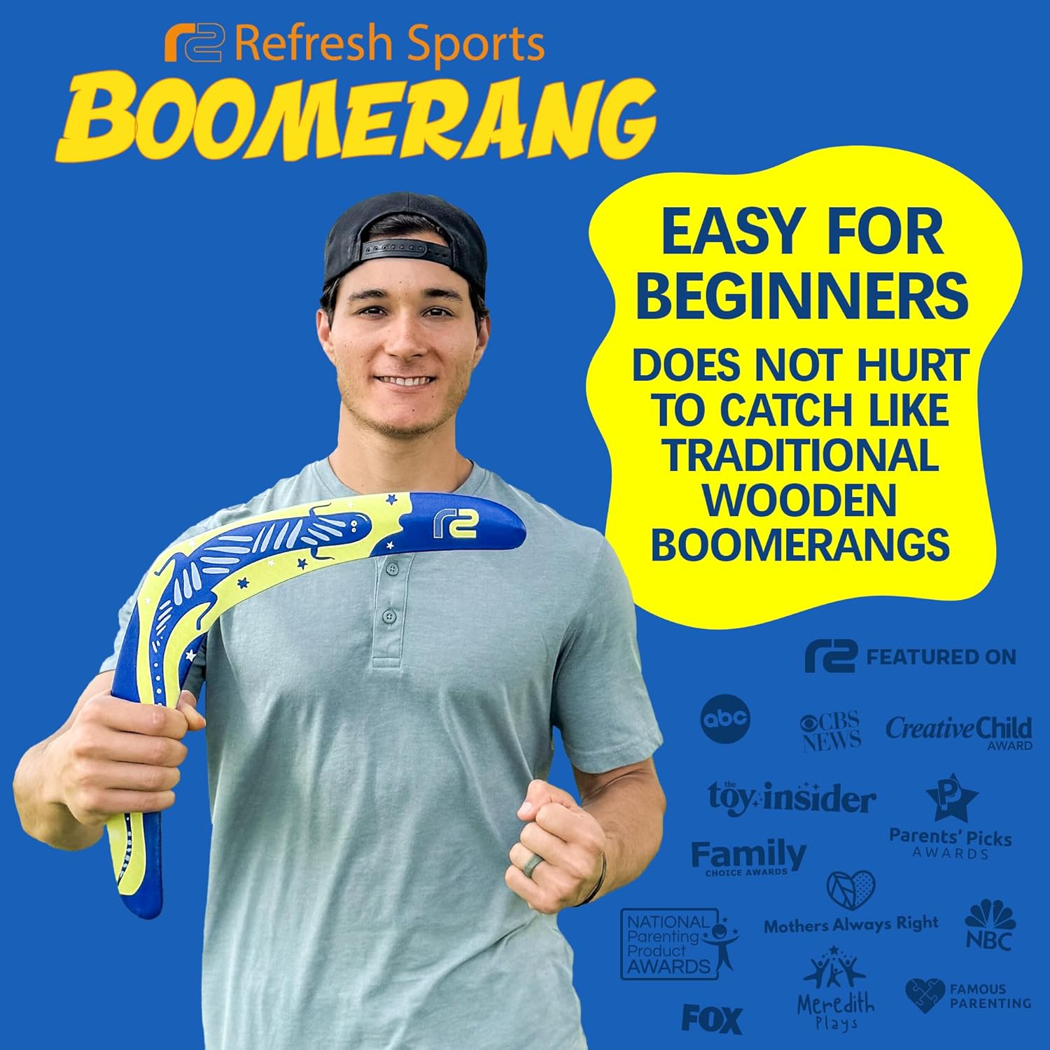 - ๐ก๐ฒ๐ & ๐จ๐ป๐ถ๐พ๐๐ฒ ๐๐ฉ๐ ๐๐ผ๐ฎ๐บ ๐๐ฒ๐๐ถ๐ด๐ป - The Boomerang is back! Our Boomerangs set the standard with a unique EVA (Ethylene-Vinyl Acetate Copolymer) Foam not seen elsewhere. Recognized for its durability in sports protection padding and gym tile flooring, this foam ensures strength against wear and tear, hard impacts, and water damage. This isn't just another traditional wooden Boomerang; it's made to easily fly back to you and not hurt your fingers when you catch it.