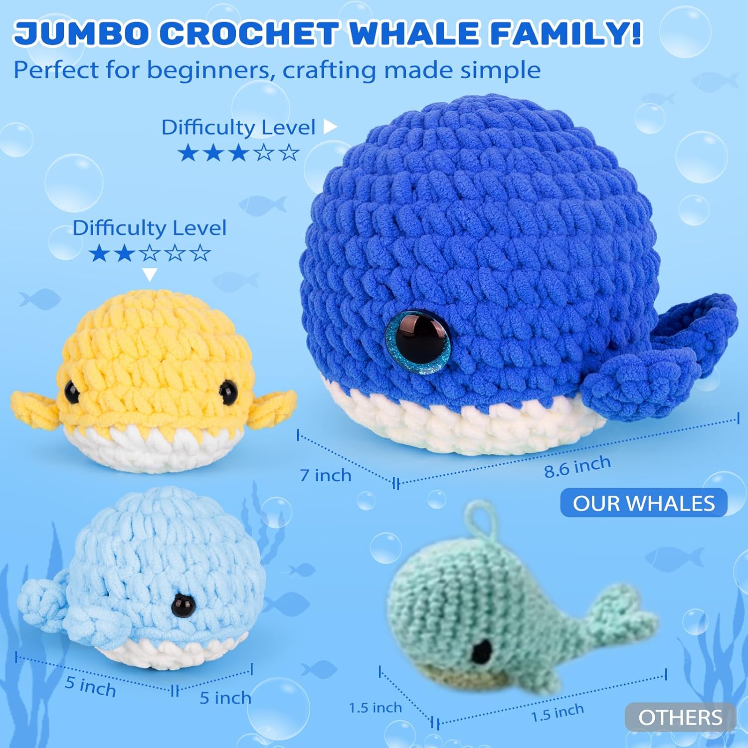 Crochet Kit for Beginner, Upgraded Easy Yarn Crochet Starter Kit w Step-by-Step Video Tutorials, Beginner Crochet Kit for Adults & Kids, Men & Women, Complete Kit Included, 3Pack Whale Family