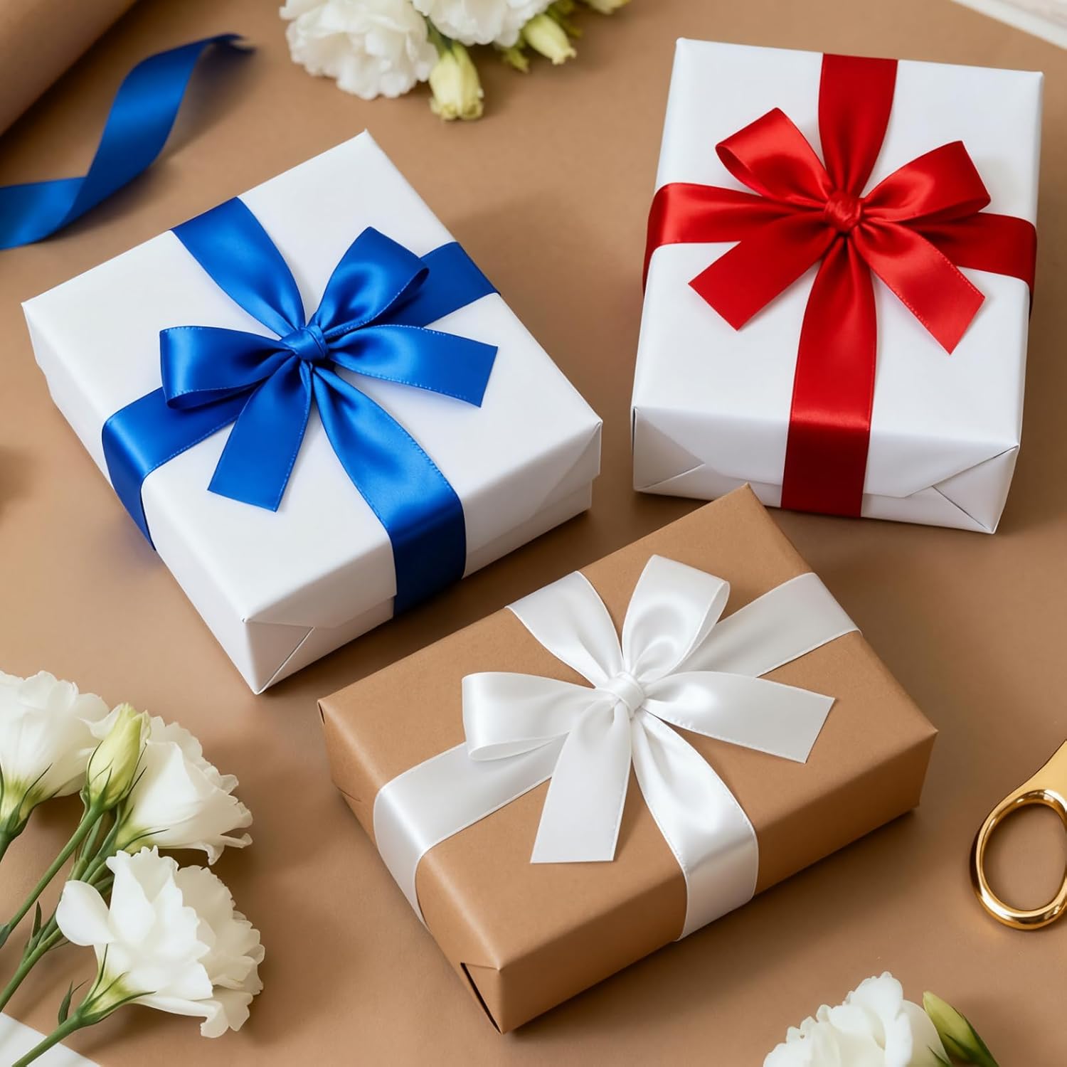 - 【Gift Wrapping Accessories】: The satin ribbon for wrapping presents is constructed with dense and sturdy weave which can help you accomplish multiple projects for different festival events, such as Valentine's Day, St.Patrick's Day, Easter Day, Christmas, Thanksgiving, Halloween, Mother’s & Father’s Day, Children’s Day and more.
