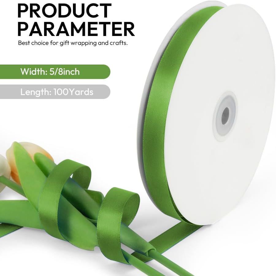 - 【Ribbon Dimensions】: Each satin ribbon spool is 5/8 inch width with total length is 100 yards, which has enough amount for your daily need. The gift wrapping ribbon can be easily stored and the spool is space-saving.