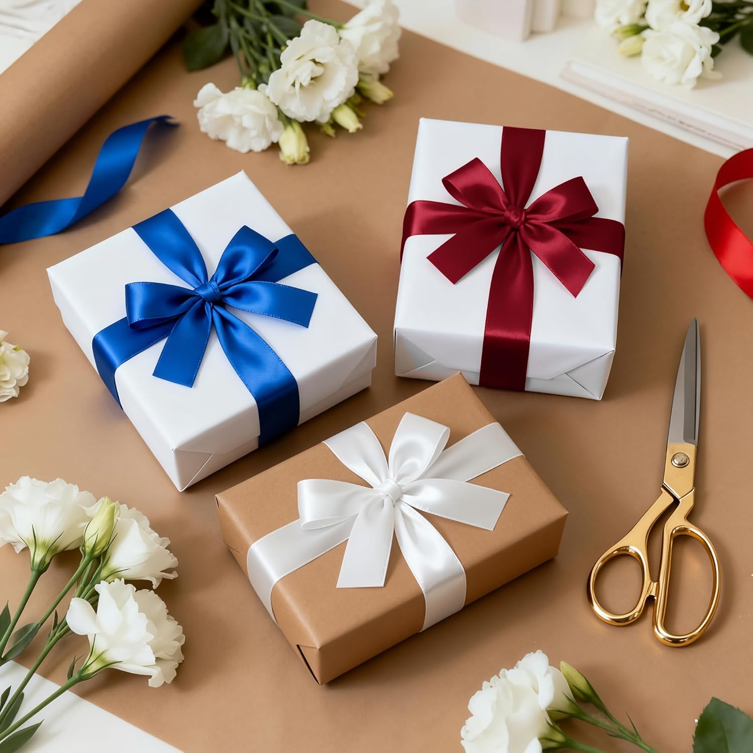 - 【Multiple Colors】: The gift wrap ribbon roll has multiple colors and will not fade easily. The durable gift ribbon can be designed in various palettes to apply in occasions like birthday, wedding, party, holiday decorations, home coming, anniversary, baby shower, family gathering and more.