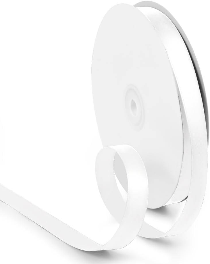 5/8 Inch 100 Yards White Ribbon, Fabric White Stain Ribbon for Gift Wrapping, Wedding and Birthday Party Decoration, Valentine's Day, Craft, Flower Bouquet, Sewing