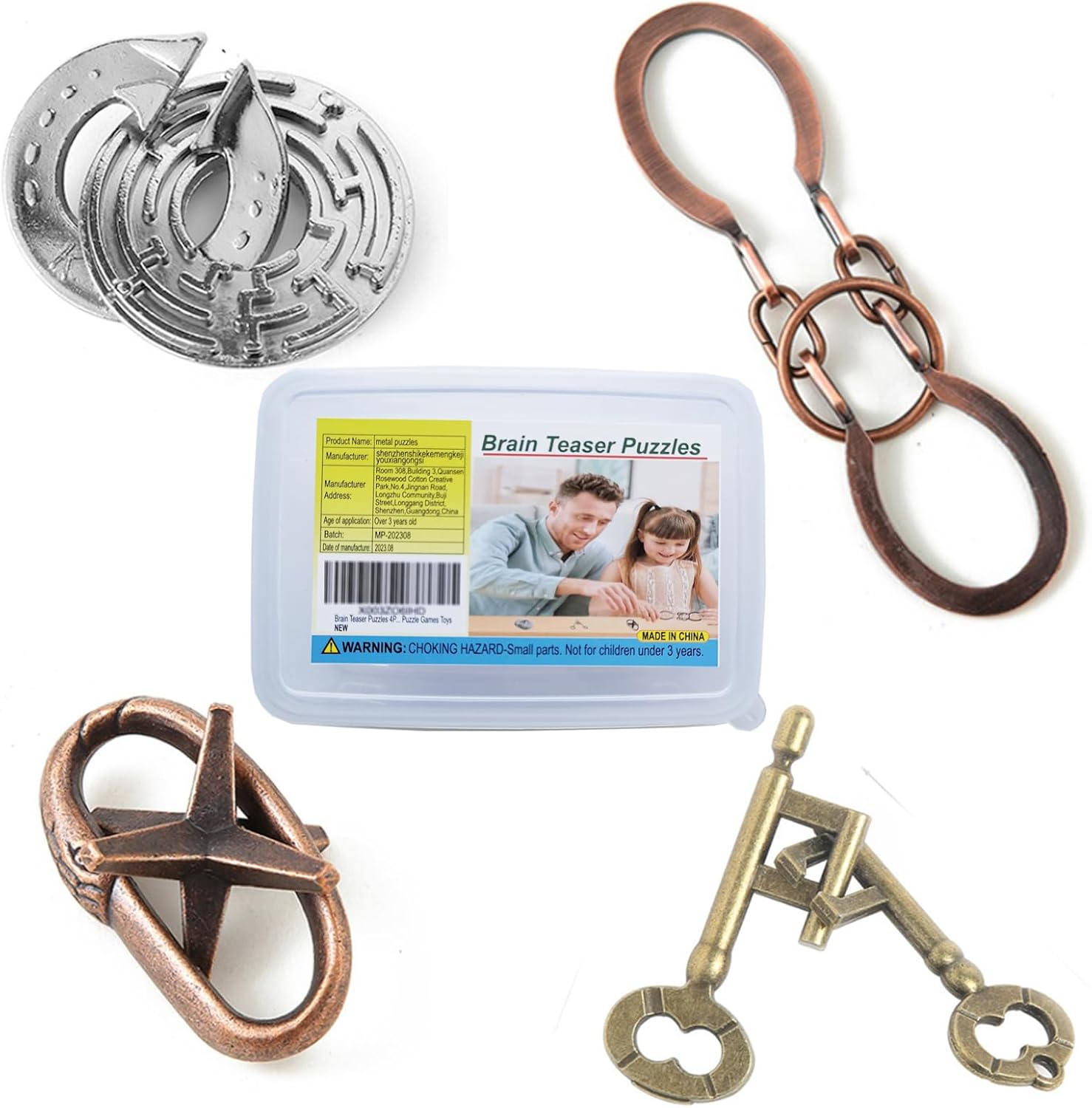 - š SAFE AND DURABLE: 4 in 1 metal brain teaser puzzles are made of high quality thick and durable alloy material. Smooth and burr-free, no need to worry about scratches, perfect for long-term play.