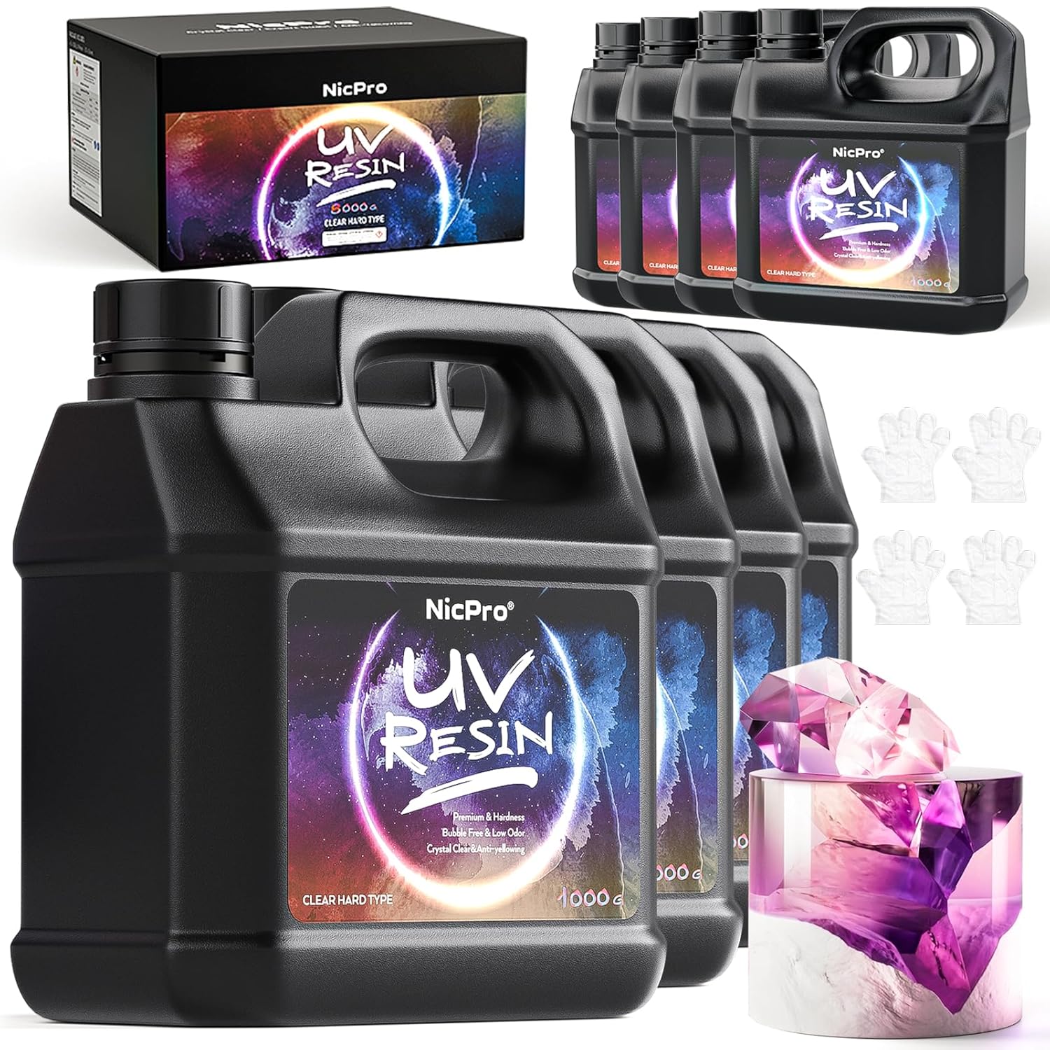 Nicpro UV Resin, 8000g Large Crystal Clear Cure Kit, No Mixing & Quick Curing Transparent Solar Activated Glue for Jewelry Making, Epoxy Resin Molds, Coating and Casting