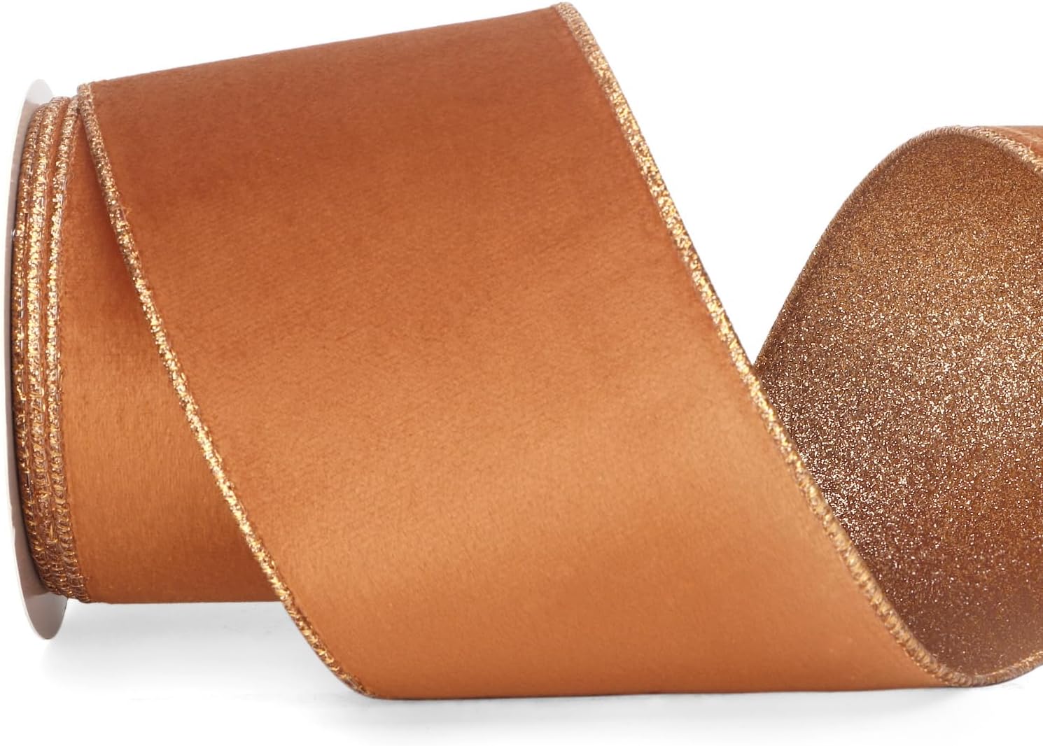 Ribbli Burnt Orange Velvet Wired Ribbon 4 Inch Copper Velvet with Copper Glitter Christmas Ribbon for Christmas Tree Decoration Big Bow Gift Wrapping Crafts Wreaths Supplies- 10 Yards
