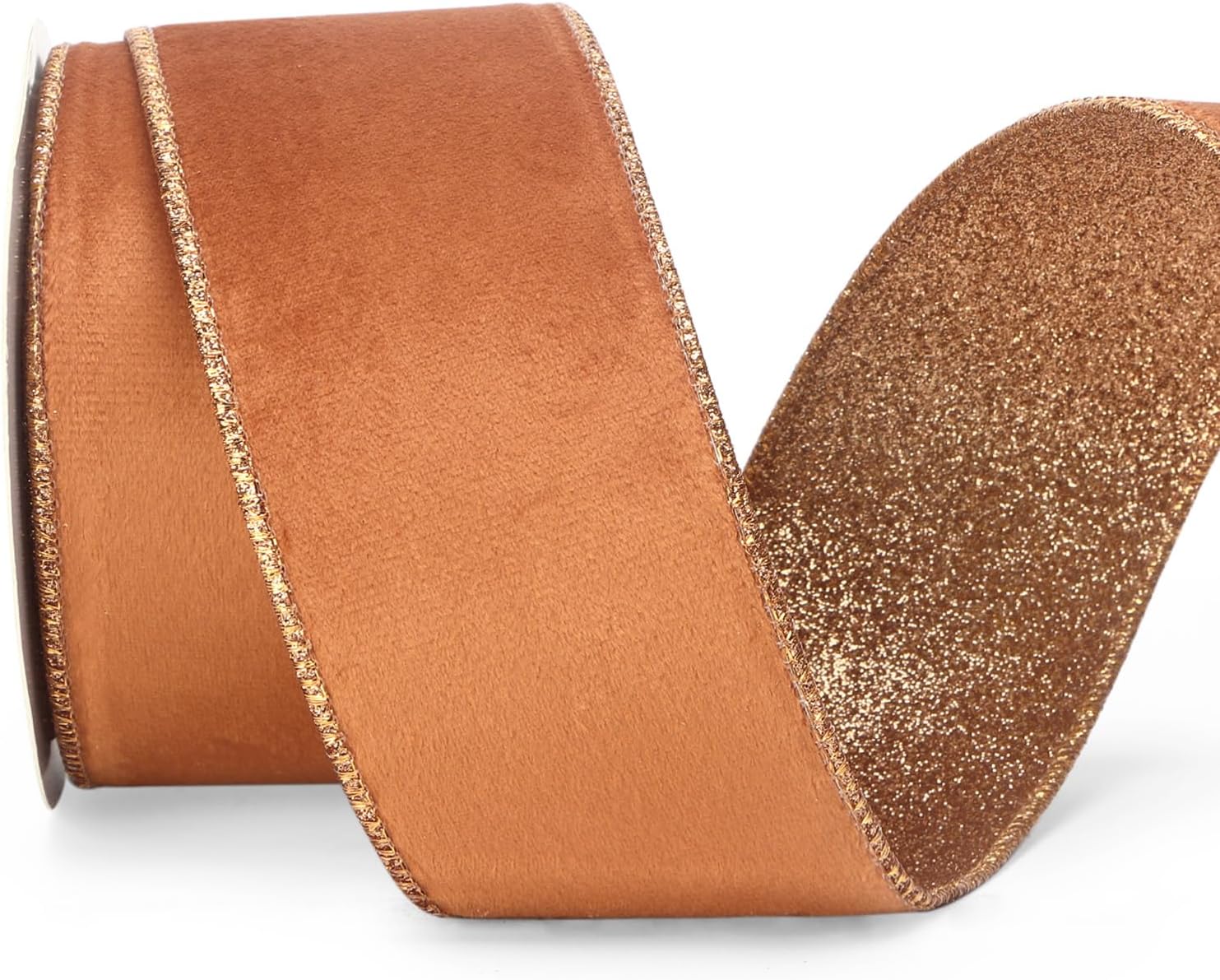 Ribbli Burnt Orange Velvet Wired Ribbon 2.5 Inch Copper Velvet with Copper Glitter Christmas Ribbon for Christmas Tree Decoration Big Bow Gift Wrapping Crafts Wreaths Supplies- 10 Yards