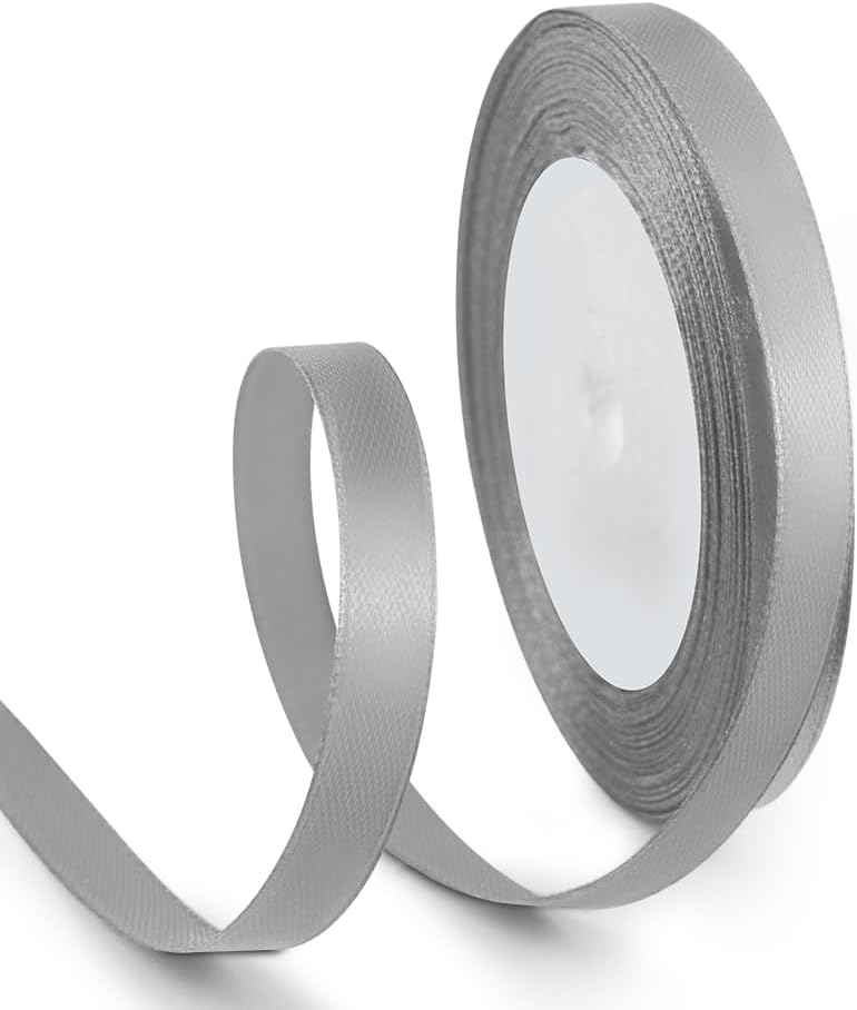 3/8 Inch 25 Yards Satin Ribbon Silver, Solid Color Fabric Ribbon for Gift Wrapping, Wedding, Polyester Gift Ribbon for Birthday Party Decoration, Craft, Hair, Floral, Sewing
