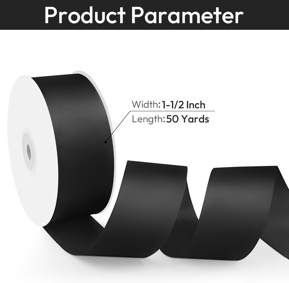 - 【Ample Length for Your Craft】1-1/2" wide black satin ribbon is 50 Yds long, providing ample material for all your crafting needs such as wedding invitations, sewing, hair bows, bridal bouquets, lei making, homecoming mum accessories, and more.