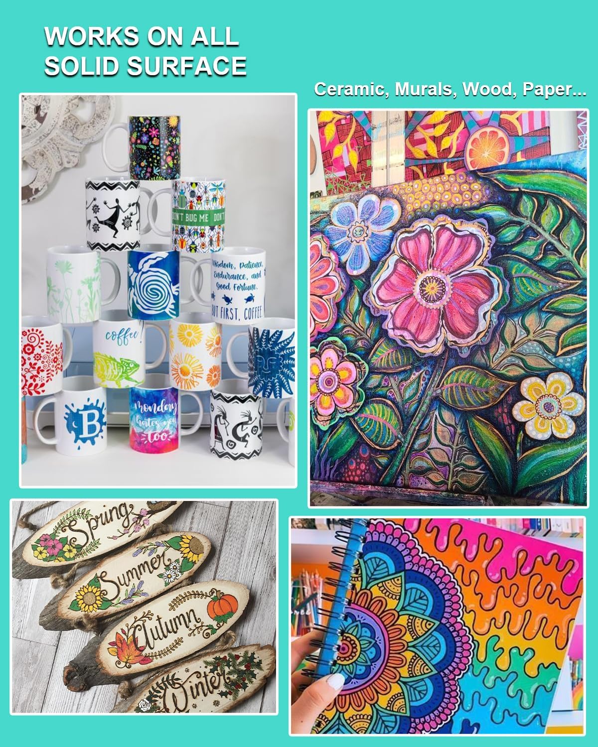 - Works on Multiple Surfaces: These acrylic paint pens are perfect for use on a variety of surfaces like Tagging, Rock, paper, glass, metal, wood, plastic, stone, leather, canvas, textiles, and more. Unleash your creativity and transform any surface into your canvas with our 15mm jumbo poster markers.