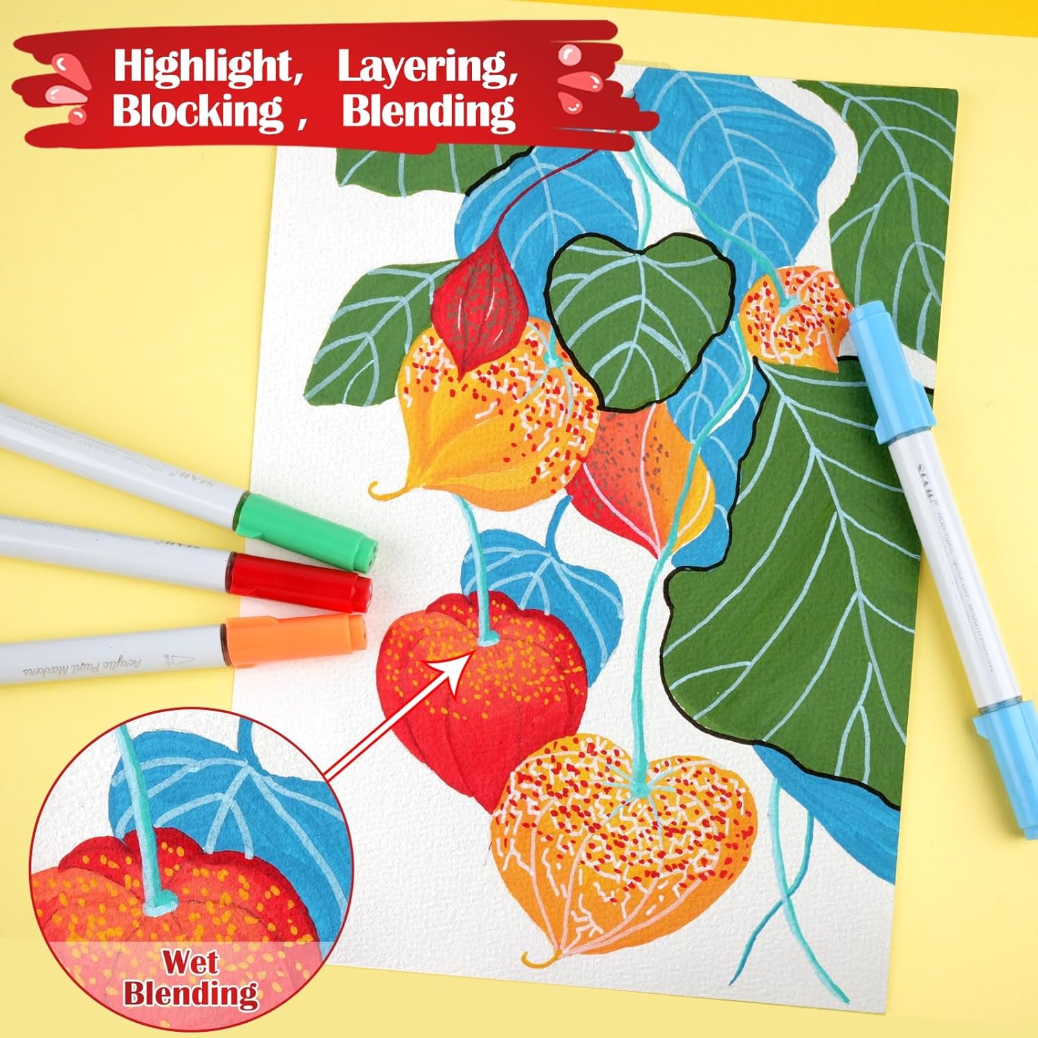 SFAIH Halloween Gifts Acrylic Paint Markers, 48 Colors Dual Tips Acrylic Brush Markers With Chisel Tip, Automatic Ink Control, Ultra-High Coverage, No Bleed Ink, Art Supplies for Rock, Canvas, Fabric