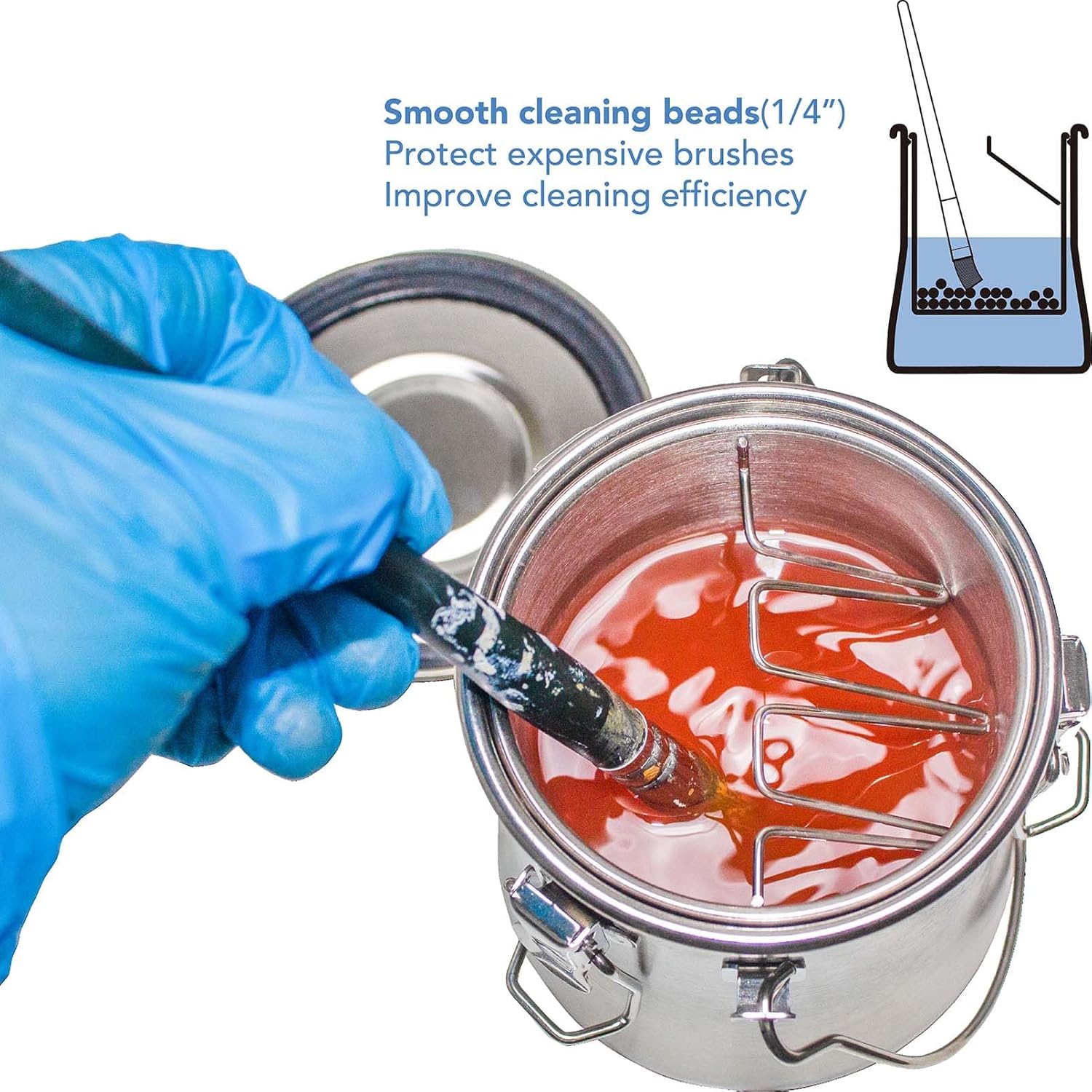 - The brush washer is equipped with stainless steel cleaning beads, which not only make the brush cleaner when cleaning the brush, but also protect the expensive soft brush from damage, extending the life of the brush