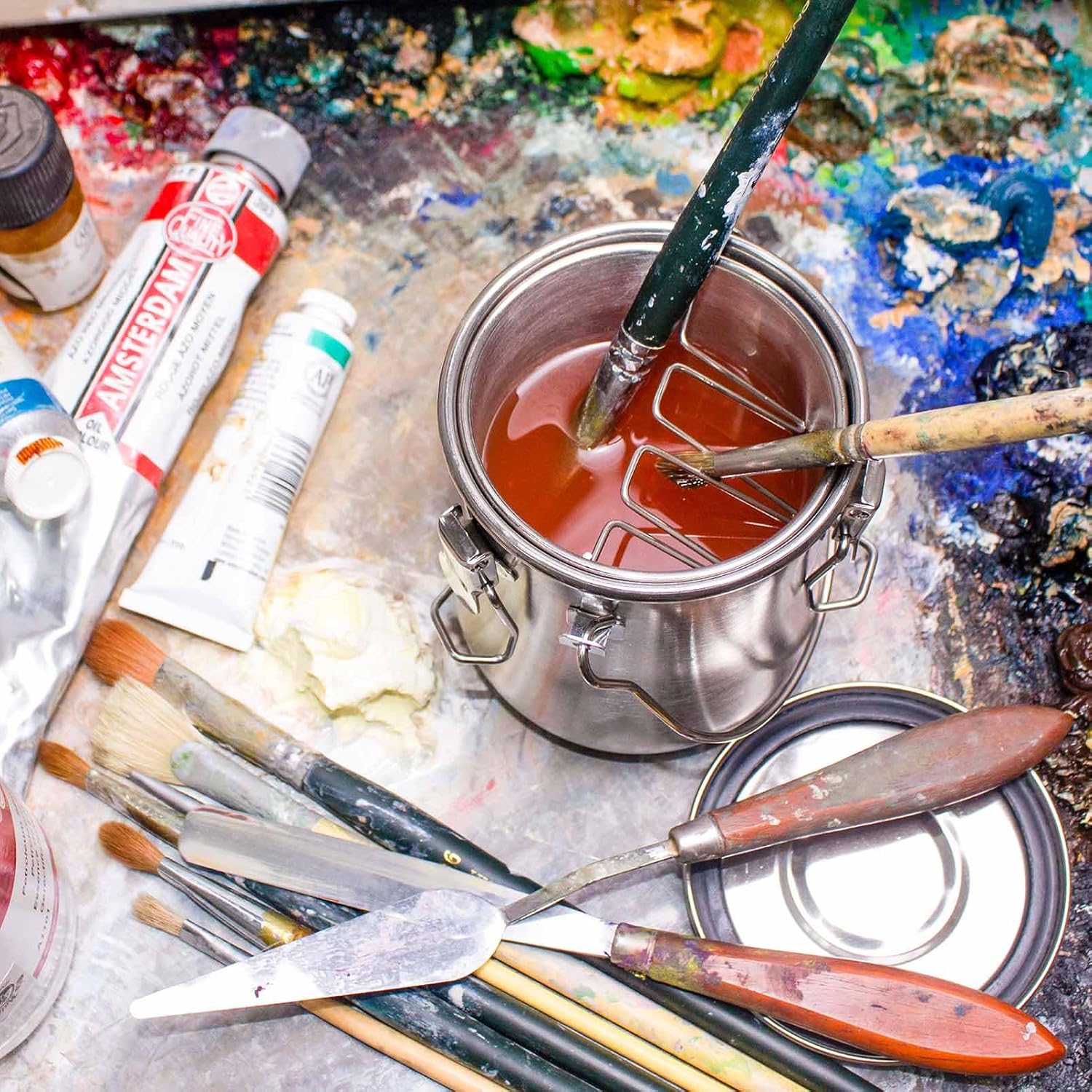 - The paint brush washer is made of high-quality stainless steel with a seal lid to prevent leakage of volatile brush cleaner(large size:3.8x4.8in,9.7x12.2cm)