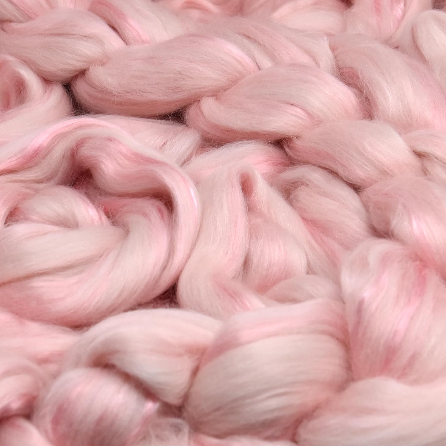 Merino Silk Luxe Tonal Designer Blend. Superfine Merino, Mulberry Silk, Tussah Silk. Top Roving for Spinning or Felting. Fleur de Rose 1oz