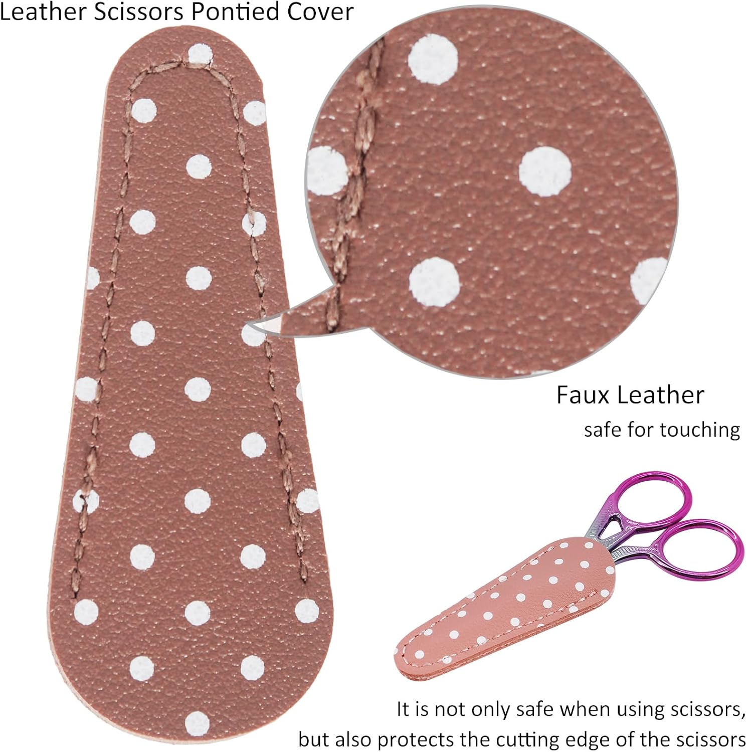 - Scissors with cover:1pc small sewing scissors and leather scissors safe cover. suitable to be as a delicate gift for friends or families who love embroidery, DIY working, and keep children away from scissors.