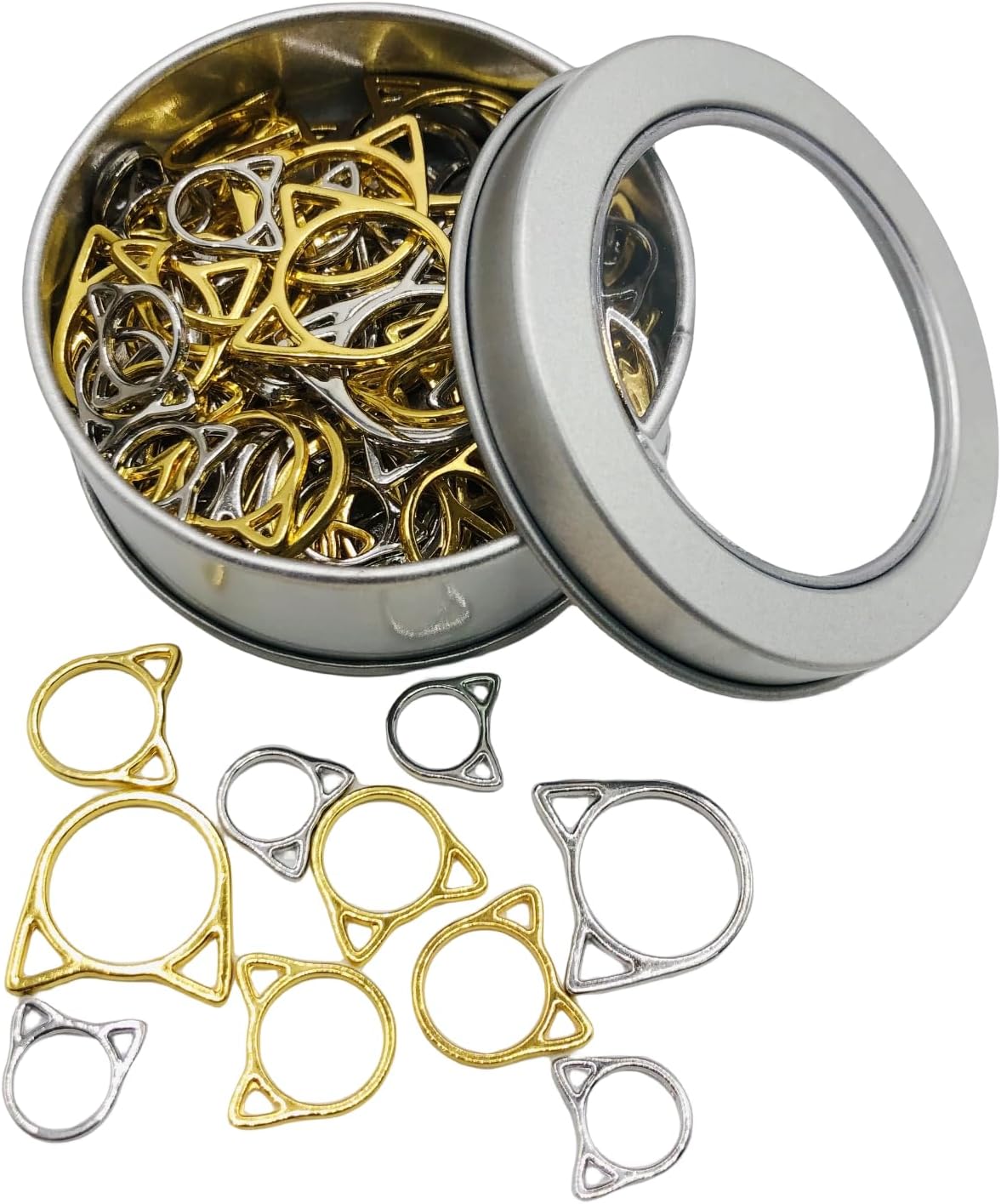 Hilsayum 30PCS Cat Stitch Marker Knitting Stitch Markers Metal Crochet Markers Ring Crocheting Accessories for Weaving, Handmade Crafts