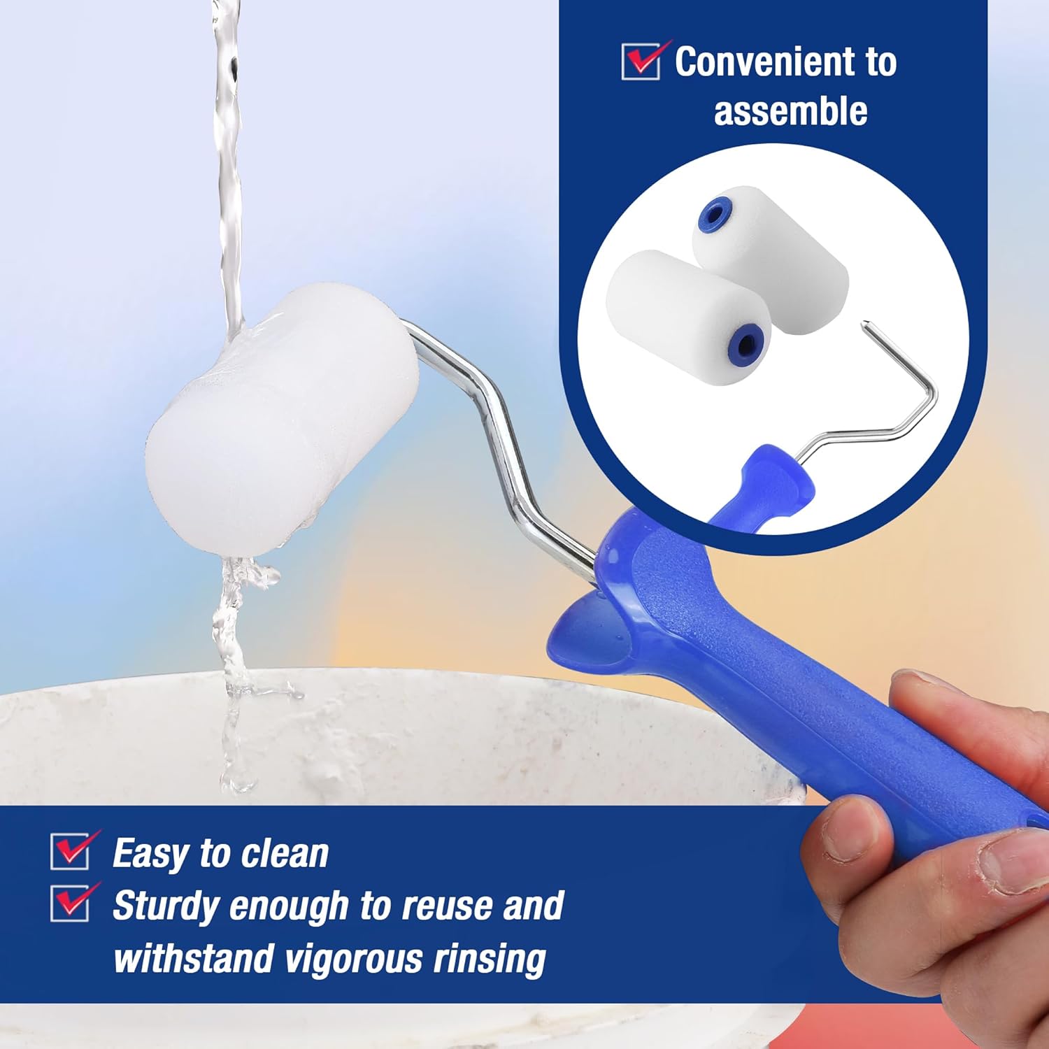 - REUSABLE – It’s easy to assemble and disassemble the roller with a simple clip. The foam can be easily washed and reused.