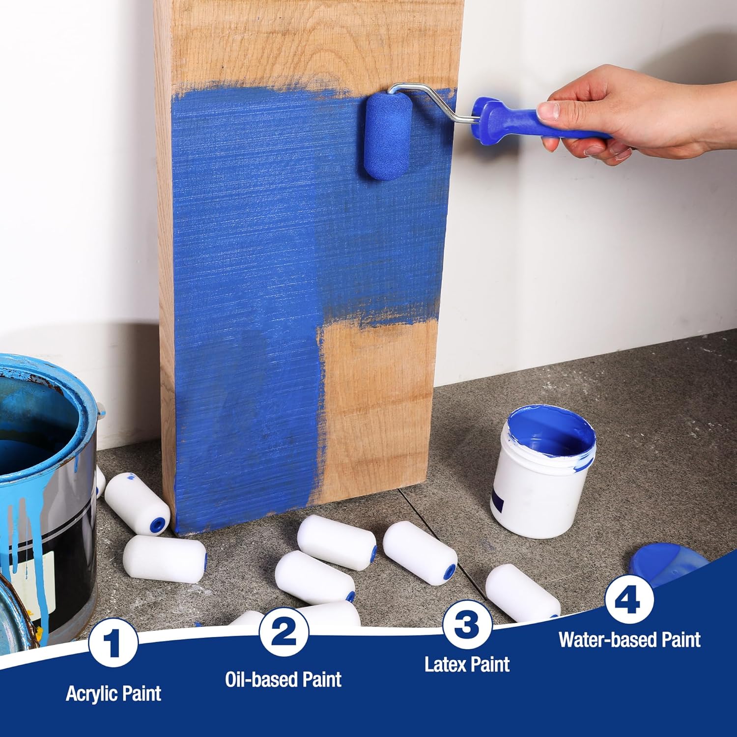 - MINI SIZE – The 2.5-inch roller is designed for small projects and tight areas like painting cabinets, frames, fence, doors, refurbishing furniture, small touch-ups, or trim painting. The foam can work with Acrylic, oil-based paint, latex paint, and water-based paint.
