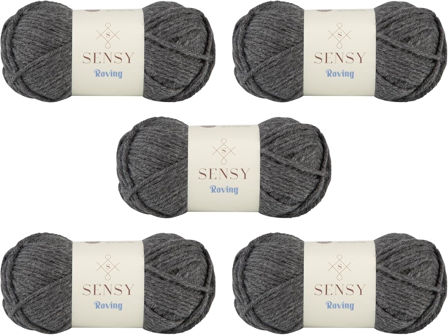 5 Skeins of Sensy Roving Yarn, 3.5 oz, 132 Yards, Gauge 5 Bulky (Dark Gray Heather)