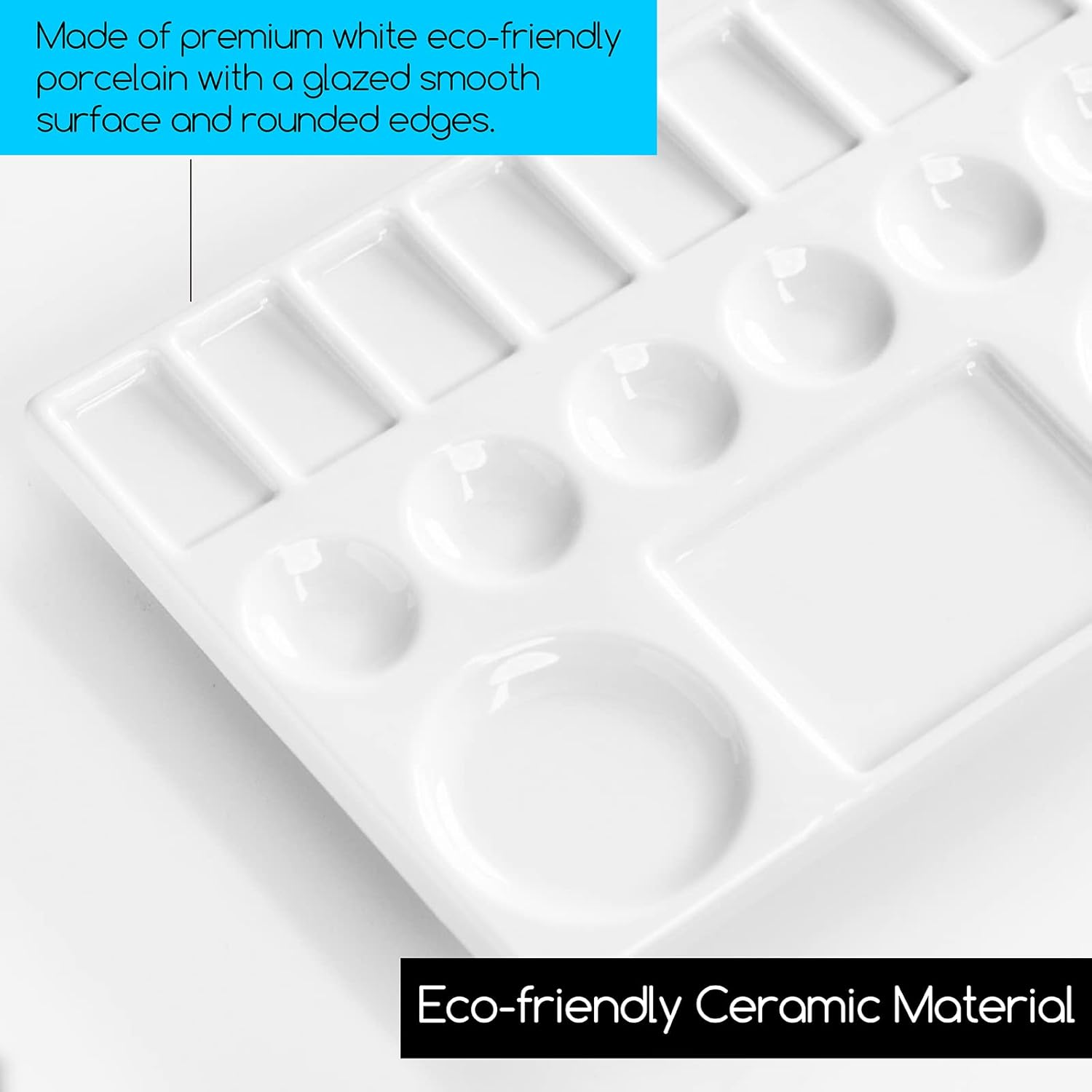 - Ceramic Watercolor Palette: MEEDEN paint palette made from premium white eco-friendly ceramics material. Moderate weighted-2 lbs,Ideal for studio or travelling. reusable, sturdy and easy to clean.