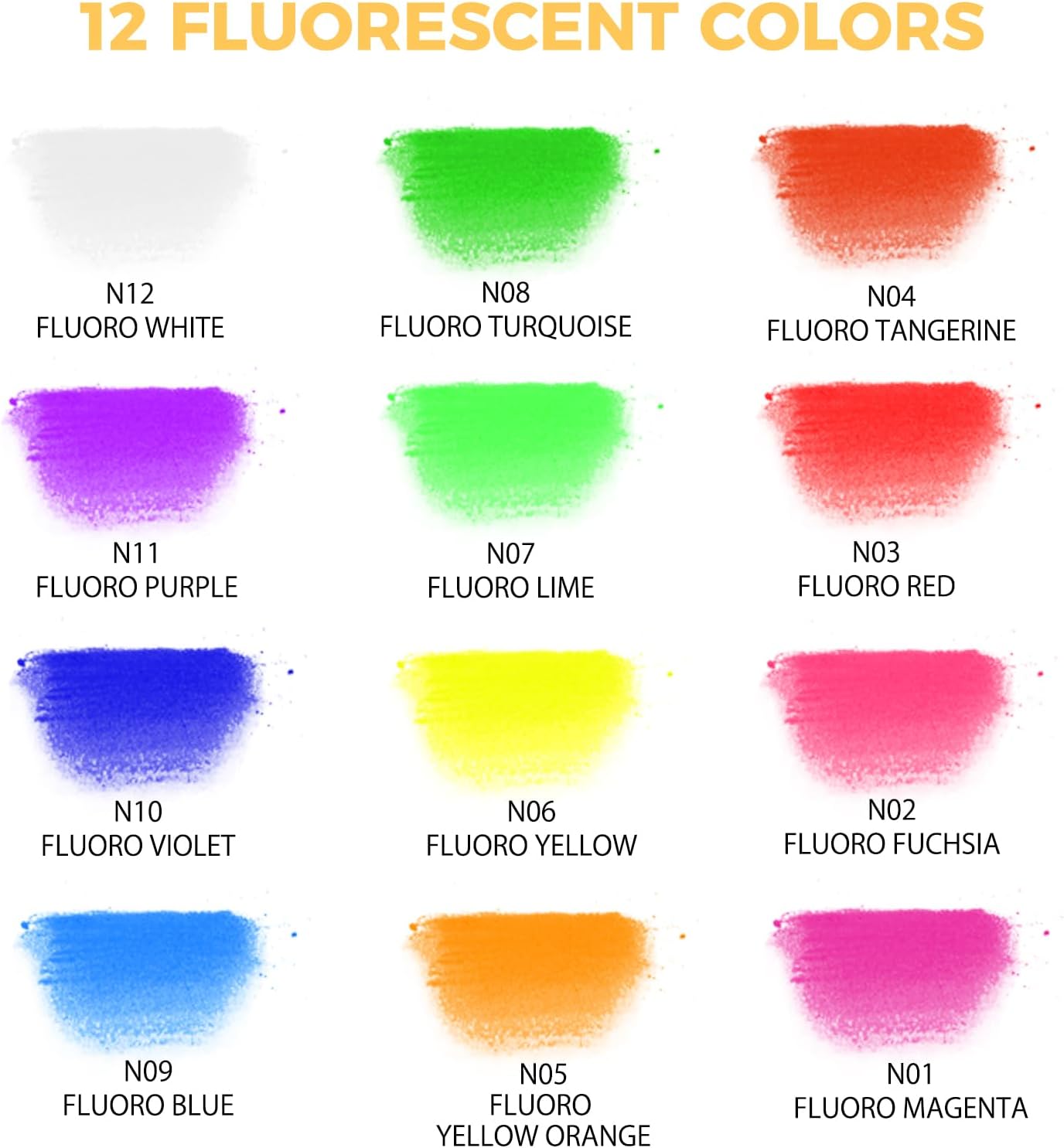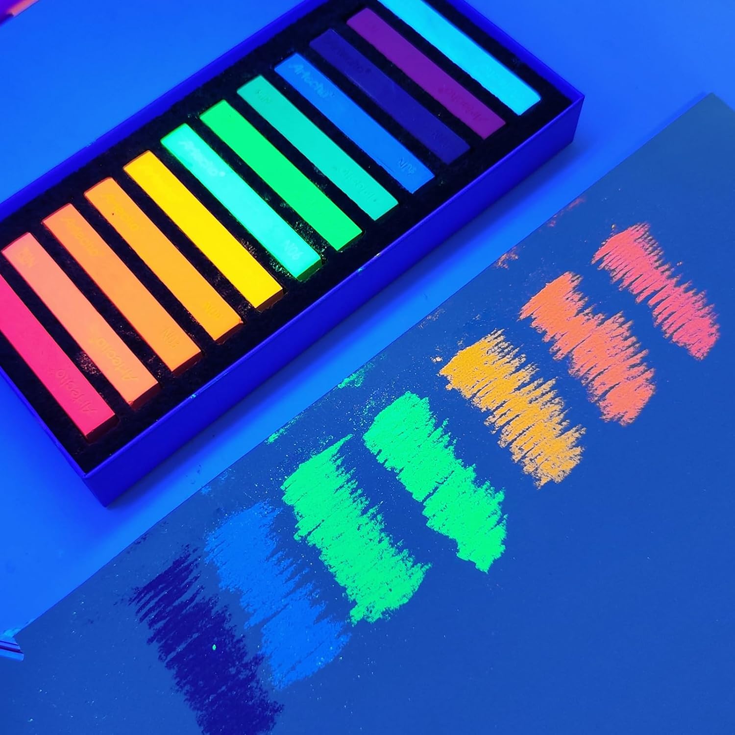 - Brilliant Colors: Artecho premium soft pastel includes 12 fluorescent colors which can show fantastic luminous effects under UV light or black light. High-quality pigments
