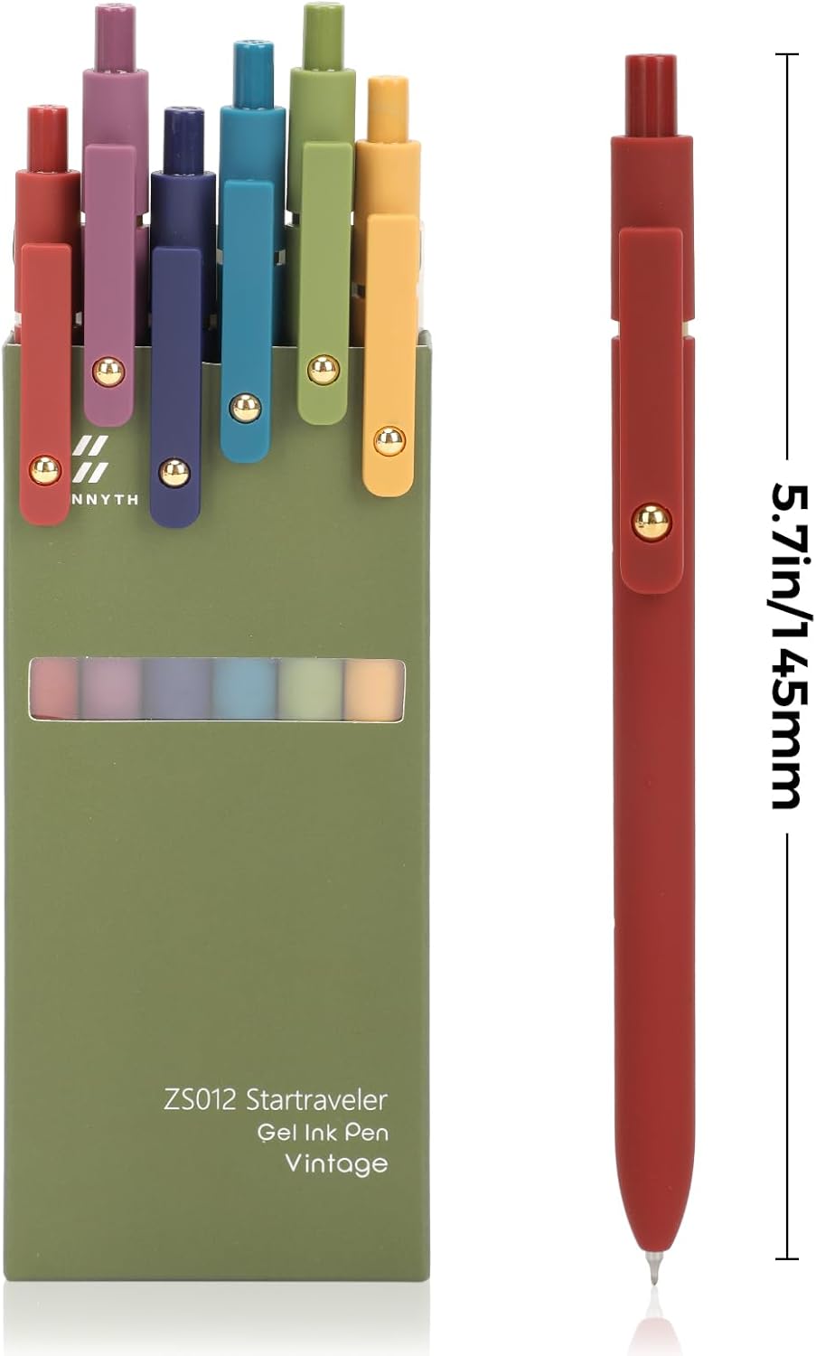 Ddaowanx Gel Pens, 6 Pcs 0.5mm Quick Dry Black Ink Pens Fine Point Smooth Writing Pens, Office Desk Accessories for Women(6 Pcs Vintage-Black Ink)