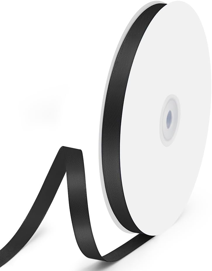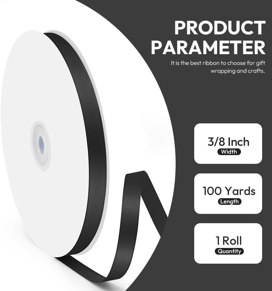 - 【Size】High grade single face black ribbon has a 3/8 inch width and comes in a lengthy 100 yards roll, providing ample material for all your creative projects. The built-in spool adds convenience, making it easy to handle and store.