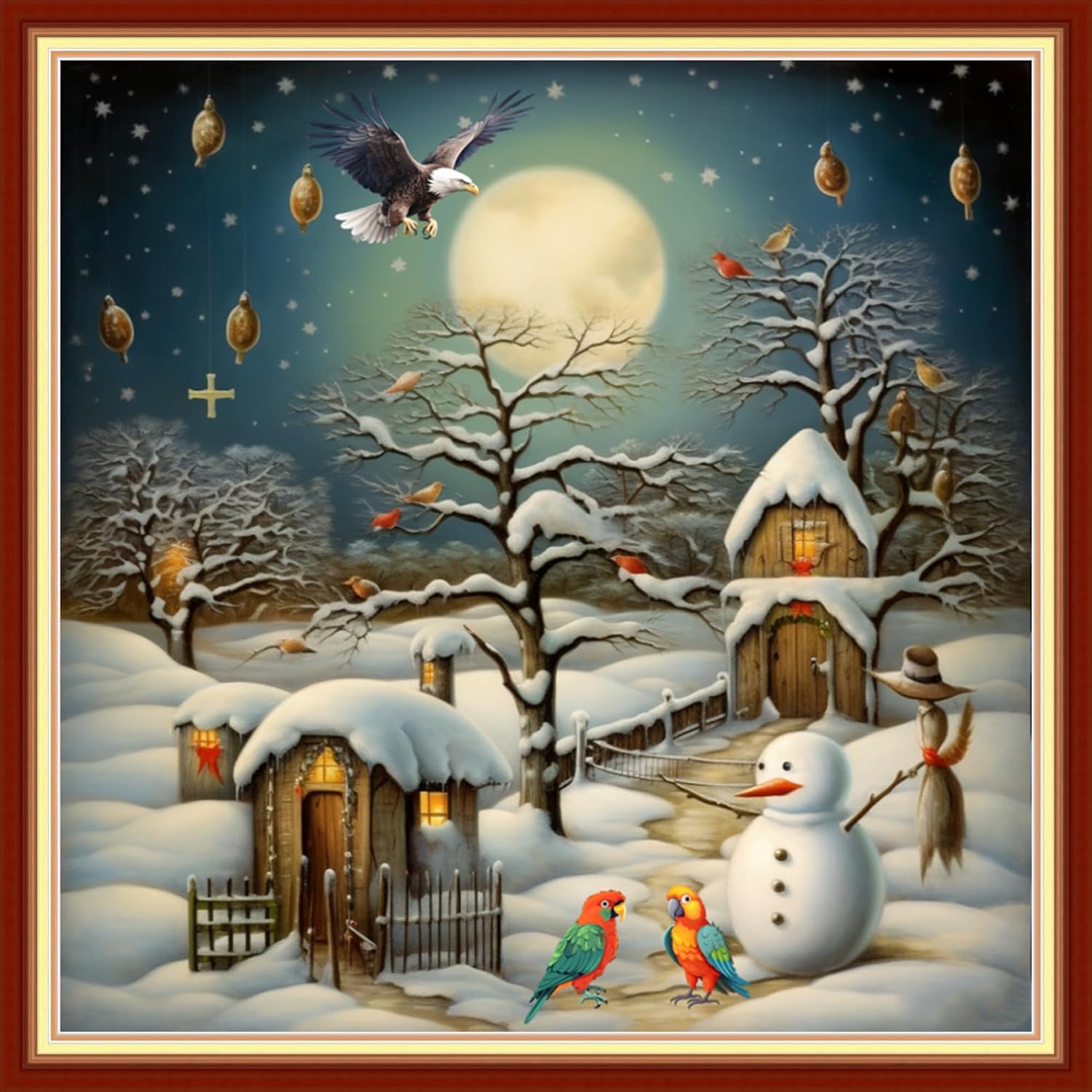 Foxdiviy Stamped Cross Stitch Kits Full Range of Embroidery Needlework Starter Kits for Beginners Adults 11CT Embroidery Patterns Art Crafts DIY Needlepoint Kits-Snowscape 18x18 inch