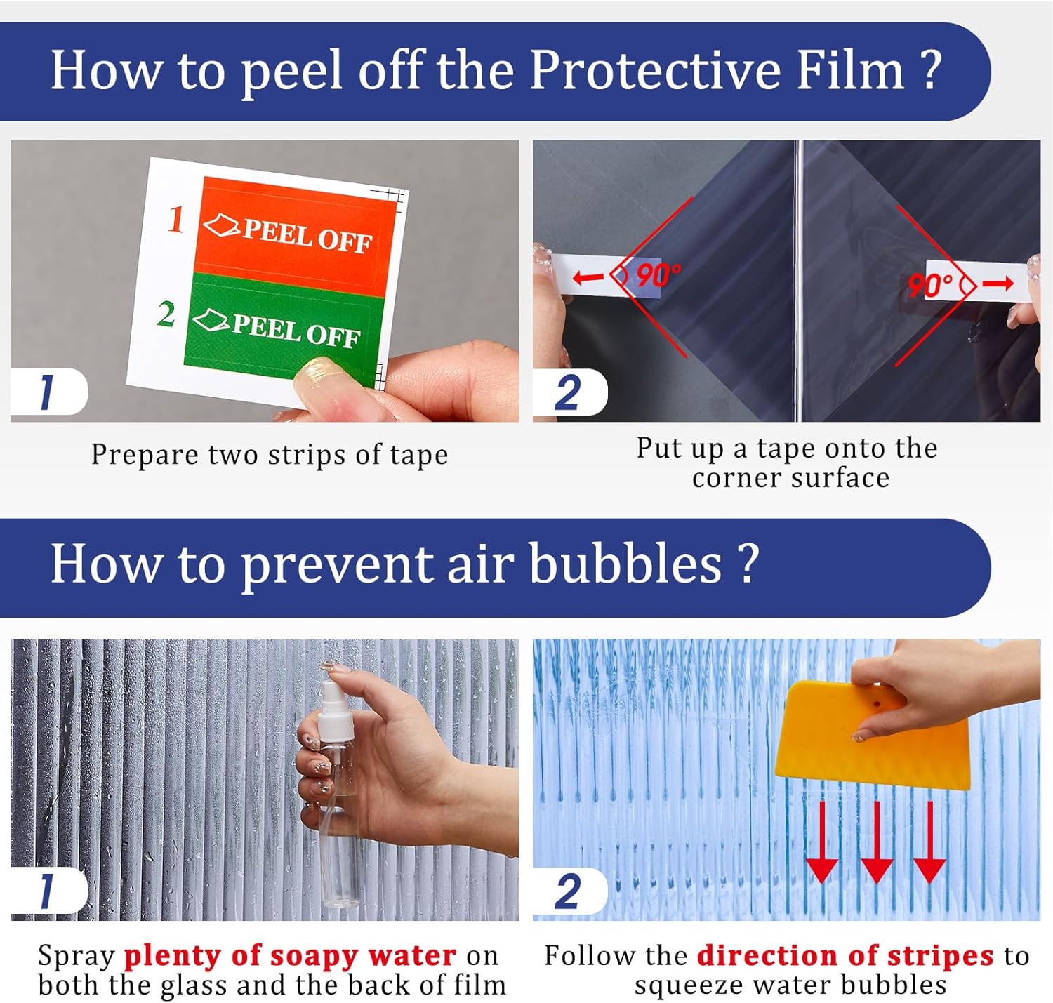 - Easy installation: Peel off the backing film before installation and films includes two peel-assist tabs for effortless removal. Spray enough water before applying and reposition the film as needed then just squeegee water out