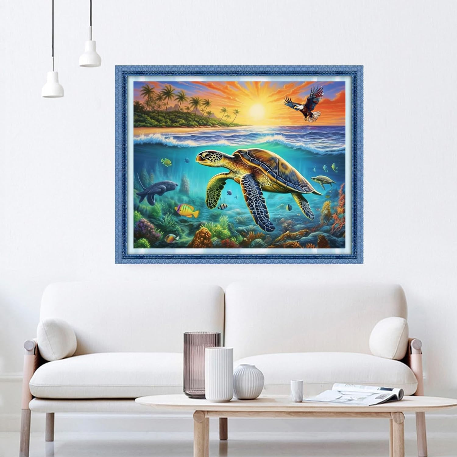 Dooxvey Cross Stitch Kit for Adult Beginners - 11CT Underwater Turtle Pattern, 16x20 inch
