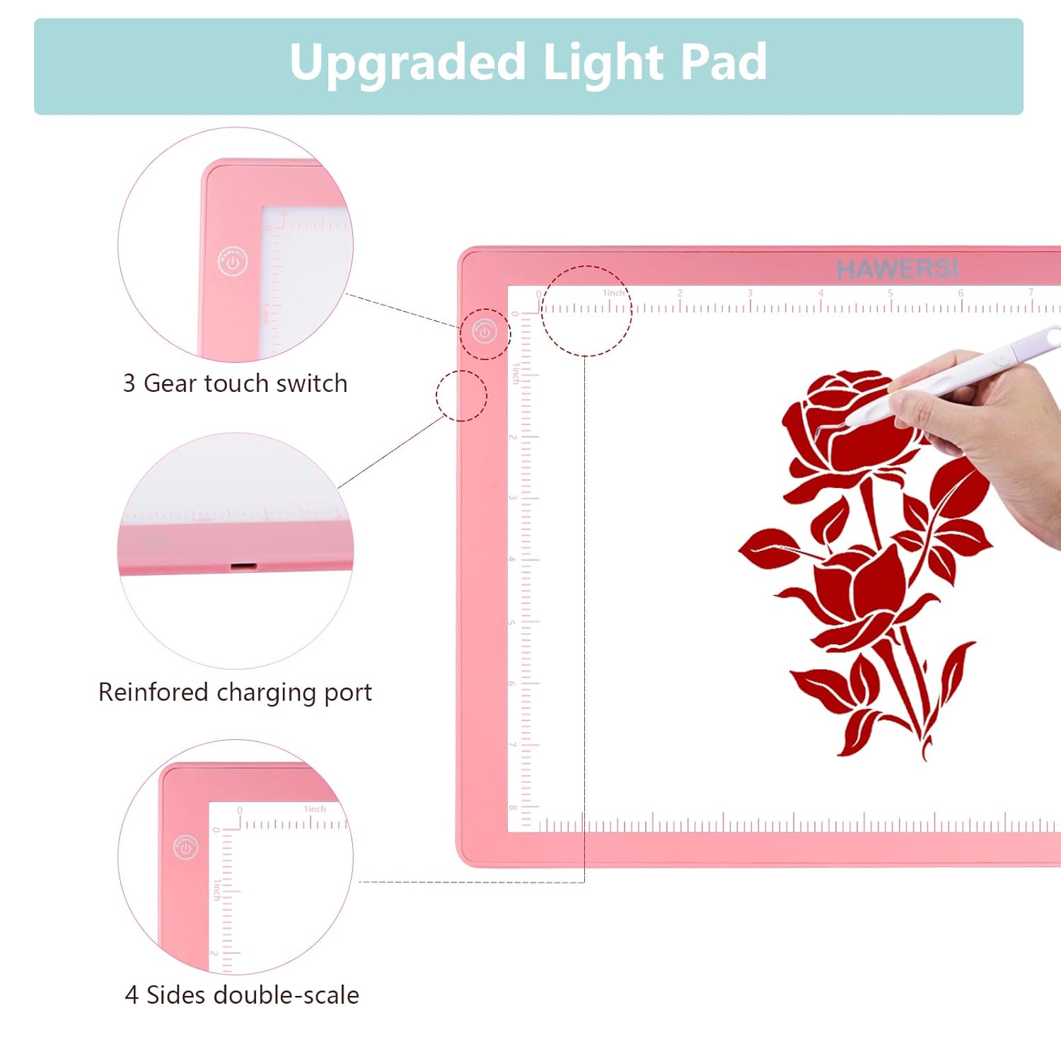 - Upgraded Vinyl LED Light Pad:Our light pad has a large size of 13.6*9.8inch,three levels of brightness,high brightness and uniform light without hurting the eyes,making the material cutting outline to be displayed very clearly during the day and night,with a non-slip base and clear double scales on four sides to keep your vinyl work becomes easier and more enjoyable
