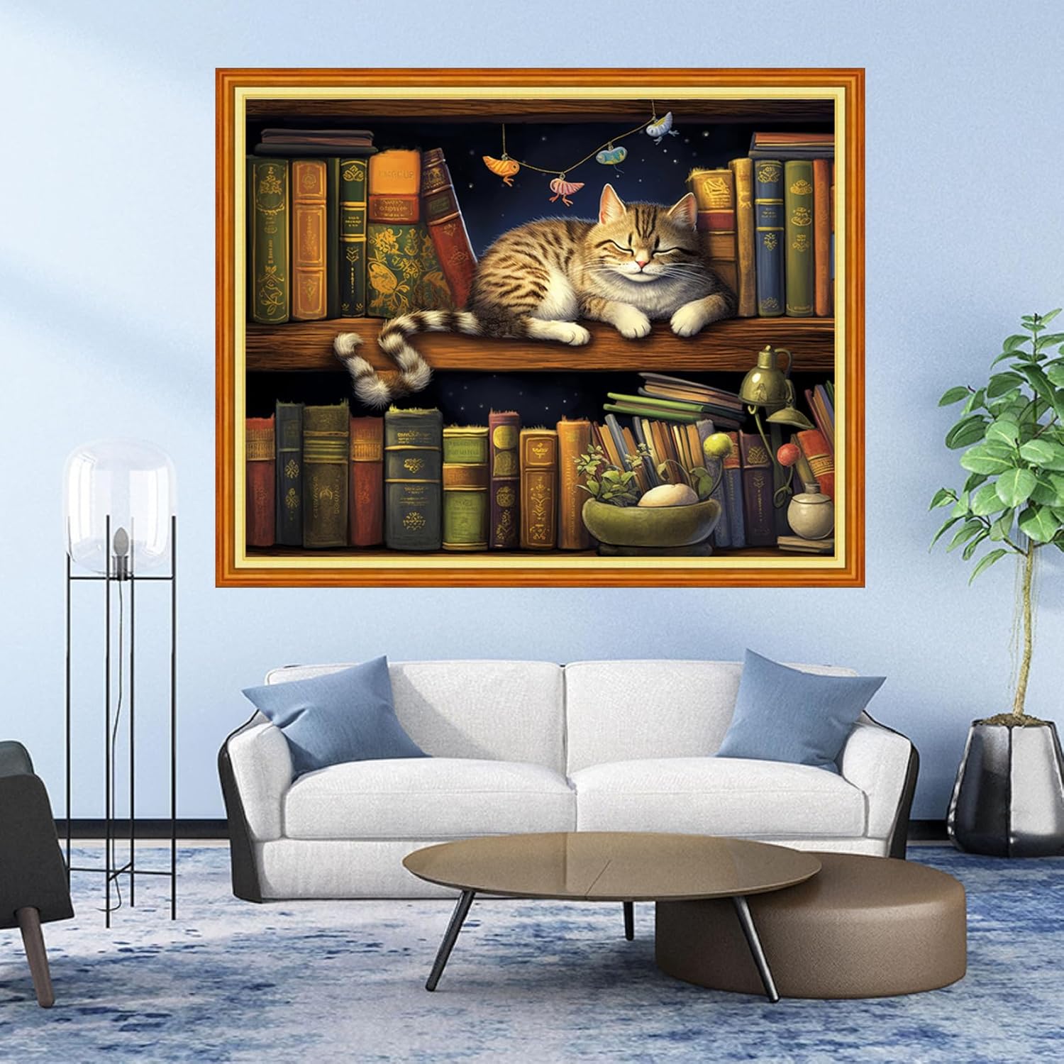 DMCVIVR Stamped Cross Stitch Kits for Adults Beginners Embroidery Kits 11CT Needlepoint Kits Cross Stitch Patterns Embroidery Patterns& Bookshelf Cat 16x20 inch