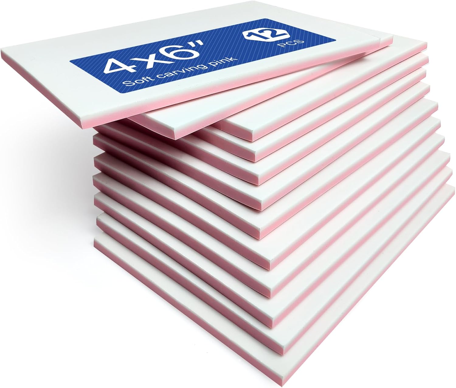 - 12-Pack Linocut Blocks: Each package includes 12pcs linoleum blocks in white and pink colors for your basic engraving needs and replacement use. Each rubber carving block measures 4x6 inches and can be cut into varisized smaller rubber sheets.
