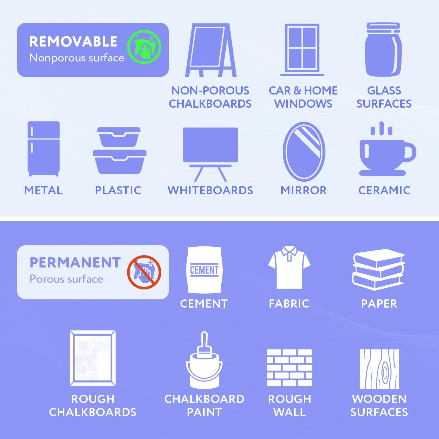 - Easy to Clean: When youβre ready to write & start fresh, a mere wipe of a wet paper towel will remove your erasable chalk markers completely and easily from almost any non-porous surface