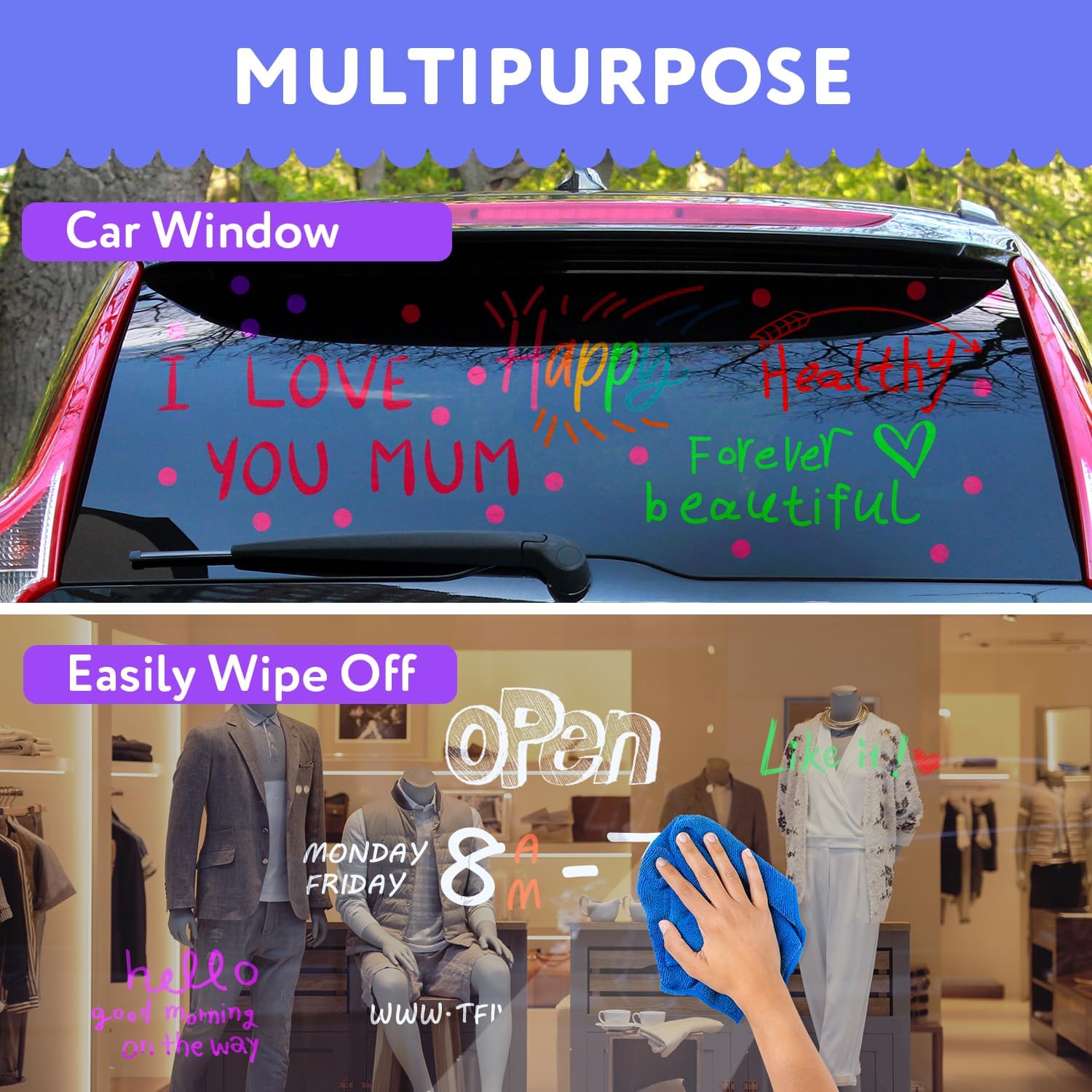- Easy to Clean: When youβre ready to write & start fresh, a mere wipe of a wet paper towel will remove your erasable chalk markers completely and easily from almost any non-porous surface