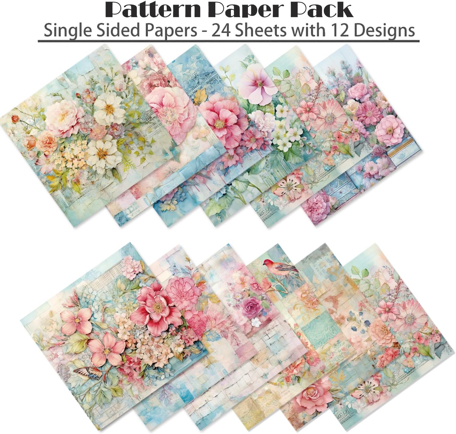YASMEN 24 Sheets Scrapbook Paper Pads, 6X6 Single-Sided Cardstock Paper, Decorative Craft Paper, Flowers Pattern Paper Pack, DIY Decopodge Papers, Journal Scrapbooking Supplies, Card Making Supplies