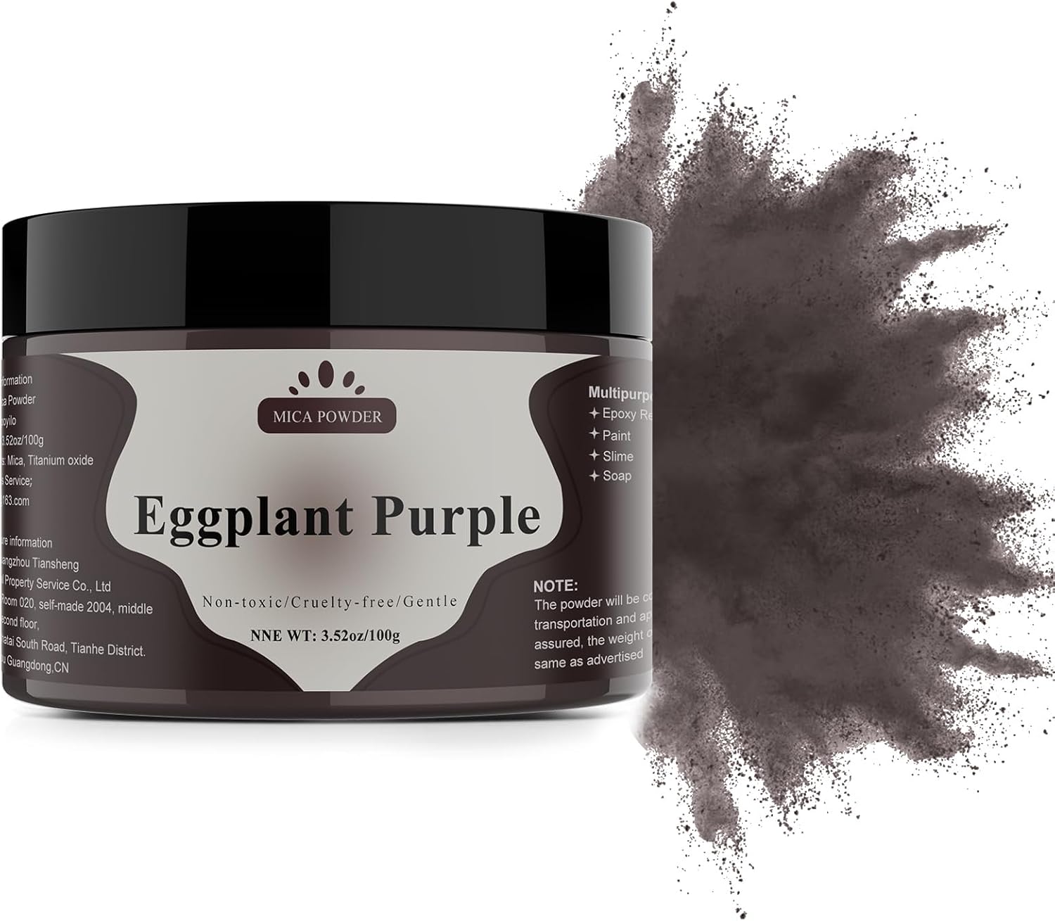 Mica Powder - 100g Mica Powder for Epoxy Resin - Metallic Color Pigment for Resin, Soap, Bath Bombs, Eye Shadow, Nails, DIY Crafting Projects etc. (Eggplant Purple)